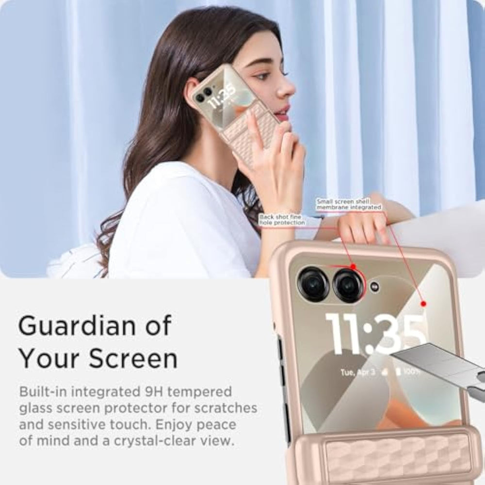 | ?Compatible Model Slim Fit?The Motorola Razr 60 Case Shock Proof is only for Motorola Razr 2025 (or Motorola Razr 60 2025). Please check its suitability before purchasing. (Note: Does not fit Motorola Razr 2024, Razr 2025 Plus, Motorola Razr 2025+ and Motorola Razr 60 Ultra). The thin design minimizes the size of the Hinge Cover Phone Cases for Motorola Razr 2025. Multiple pretty colors for Moto Razr 2025 cases are suitable for women, girls, men.(Compatible with wireless charging) | | ?All-Inclusive Hinge Protection?The Phone Case Motorola Razr 2025 with Hinge Protection features a spring-loaded elastic design and semi-automatic construction that eliminates the need to worry about sliding up and down and hinge separation, adapting to your phone's folding function while enhancing durability. Minimizing scratches on the hinge part and costly repairs from drops, the full coverage design of this Rugged Protector Para Motorola Razr 60 protects your most important part. | | ?Front Screen Protector Full Body Protection?The Moto Razr 60 Case with Screen Protector has a built-in layer of anti-scratch and drop-resistant tempered glass front screen protector, which maintains the screen's original crisp touch and HD visual feast. The Motorola Razr Shockproof Case 2025 raised edges on the screen and camera help keep the screen above ground, protecting it from scratches and scuffs.(Without Screen Protector) | | ?Military Shockproof Dust Proof?Miimall for Motorola Razr Flip Slim Phone Case 2025 has undergone military-grade drop testing, providing a full range of drop and shock protection. In addition, this Razr 60 Military Grade Cases is dustproof, preventing dust and impurities from accumulating in the gap between the case and the phone's screen. Whether you're running, biking or exploring the outdoors, it reduces the risk of screen breakage. | | ?Non-Slip Texture Precise Cutouts?Featuring a matte hard PC material and 3D anti-slip texture for drop protection, the Razr 2025 Durable Phone Case enhances grip comfort so you can say goodbye to slippery or bulky grips. The case is made of nano oleophobic coating that easily resists smudges and provides fingerprint/grease resistance. This Full Body Case for Razr 60 Motorola is finely crafted and fits perfectly on the buttons for easy access to all ports and buttons. | |