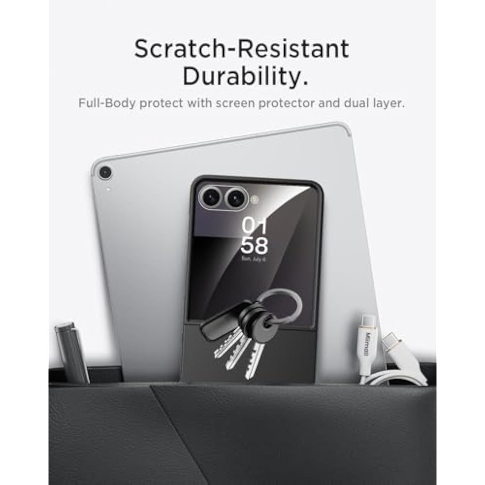 | ?Compatibility?Samsung Galaxy Z Flip7 Case slim is exclusively designed for Galaxy Z Flip7 (2025 model). (NOTICE: Not for Samsung Galaxy Z Flip 6/5/4 Phone).Features form-fitted tempered glass back panel that combines protection with sleek aesthetics | | ?Ultra-Lightweight Hard Comfortable Grip?Flip 7 Phone Case slim features a durable polycarbonate shell with anti-fingerprint matte coating. The 0.25" ultra-slim hinge-less design maintains full foldable functionality while providing reliable protection and Feel the Freedom. Compatible with 15W wireless charging accessories, achieving 30% slimmer profile than traditional hinge-based cases | | ?Military-Grade Shockproof?Shock-Proof Flip Phone Case Galaxy Z Flip 7 provides 6ft drop protection (MIL-STD-810H certified) with reinforced corners for daily accidents. The textured anti-slip backplate offers secure grip while maintaining slim profile. Perfect protective cover against pavement/stairs impacts | | ?Precise Cutouts Screen Protection?Miimall dustproof Galaxy Z Flip7 Phone Case with built-in screen protector features laser-precise cutouts for perfect alignment with volume and power controls. The responsive tactile buttons ensure accurate fingerprint scanning and smooth camera activation. Includes an HD clear screen protector that maintains full touch sensitivity while protecting the foldable display from scratches | | ?Full Body One-Piece Design?The Samsung Galaxy Flip 7 case features a full-body one-piece design with 0.5mm raised camera bezel and 0.3mm elevated screen edges with HD tempered glass. The reinforced edges strengthen corner protection while the raised camera frame prevents lens damage. The integrated screen protector effectively prevents scratches while providing complete all-around protection | |