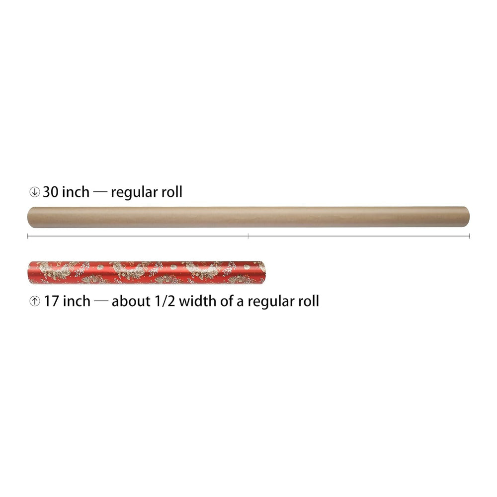 | Mini Size: Includes 1 Rolls (17" Wide X 32.8" Feet), Half The Width Of Standard Wrapping Paper. Perfectly Sized For Jewelry, Books, Cosmetics, And Other Petite Gifts While Reducing Waste. Christmas Design:Stunning Red Metallic Shine For A Luxurious Holiday Look.Intricately Designed With Pine Cones, Holly Berries And "Merry Christmas" Greeting. No Crease: Individually Rolled And Plastic-Wrapped—Never Folded! Ensures Wrinkle-Free Surfaces For Flawless Gift Wrapping Every Time. Simply Unroll, Cut, And Wrap! Cut Lines On Back: Backed With Printed Grid Lines On Every Roll, Allowing Straight Cuts Without Rulers Or Guesswork. Achieve Crisp Edges And Perfectly Proportioned Wrapping For Polished Results. Use All Occasion: Beyond Christmas! Use For Birthdays, Weddings, Anniversaries, Baby Showers, Or Corporate Events. The Timeless Metallic Patterns Add Elegance To Any Occasion.
