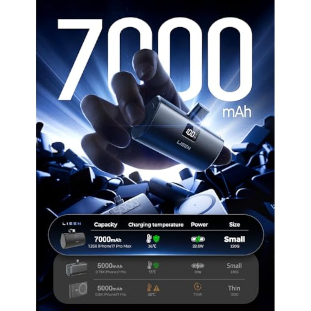 | ?Important Notes?For Optimal Performance With Your Mini Portable Charger: ? Remove Thick Case For Best Charging Efficiency. ? Mild Warmth During Use Is Normal. ? The Durable Port Connection Has Undergone Over 10 Million Rigorous Insertion Tests To Ensure Long-Term Reliability. A Slight, Secure Downward Dip Is A Normal Characteristic Of This Stable Connection Design. | | ?7000Mah Maximum Portability?Engineered For Emergencies, This Pocket-Sized Power Bank Packs A Robust 7000Mah Battery Into A Uniquely Compact Capsule Design. It Effortlessly Fits In Any Wallet, Clutch, Or Pocket, Ensuring Reliable Power For Your Portable Charger Iphone 17 And Other Devices Is Always Within Reach When You Need It Most. | | ?22.5W Super-Fast Charging?Get A 50% Charge For Your Iphone 16 In Just 30 Minutes. The Advanced 22.5W Output Of This Mini Portable Charger Delivers High-Speed Power, Quickly Providing Hours Of Use For Your Devices During Busy Days On The Move. | | ?Only Usb-C Compatibility?This Portable Charger Usb C Is Widely Compatible With Iphone 17/17 Pro/Pro Max Air, Iphone 16/16 Plus/16 Pro/16 Pro Max, 15/15 Plus/15 Pro/15 Pro Max, Samsung Galaxy S25, S24, Moto G7, G6, G7 Power, G7 Plus, G7 Play, Moto Z2 Play, E5, G6 Plus, Z3 Play, Etc; Compatible With Google Pixel 9 Pro, Pixel 7, Pixel 6 Pro, Etc; Also Supports Pocophone, Oppo, Tcl, And Other Android Usb C Phones. | | ?Hassle-Free After-Sales Service? Serving Over 100,000+ Owners Of Our Small Portable Charger And Other Devices, Prioritizes