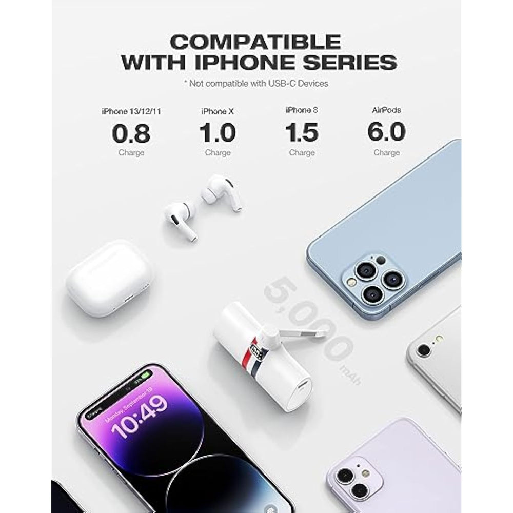 | 5000Mah Cordless Portable Charger: Designed For Iphone And Airpods, This Battery Pack With 5,000Mah Capacity Can Provide 0.8 Charges For Iphone 13, 0.9 Charges For Iphone 12, And 6 Charges For Airpods. No Cord Is Needed, Charge And Play. You Don'T Need To Carry Around The Iphone Cord As Other Chargers Require It | | 20W Pd Fast Charging: The Built-In Cable Supports Up To 20W To Iphone, Which Can Power Your Phone Up To 50% In 20 Minutes. This Iphone Portable Charger Is More Than Thrice Faster Than A 5W Ordinary Charger. It May Be Your Lifesaver In An Emergency | | Upgraded Charger With Stand Led Display: This Iphone Battery Pack Has A Small Foldable Stand. It'S Nice To Keep Your Phone Charged And Stand Up On Its Own While Making A Zoom