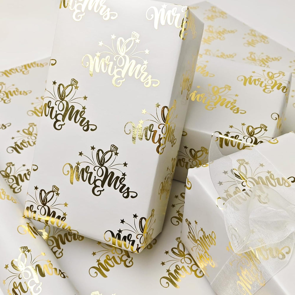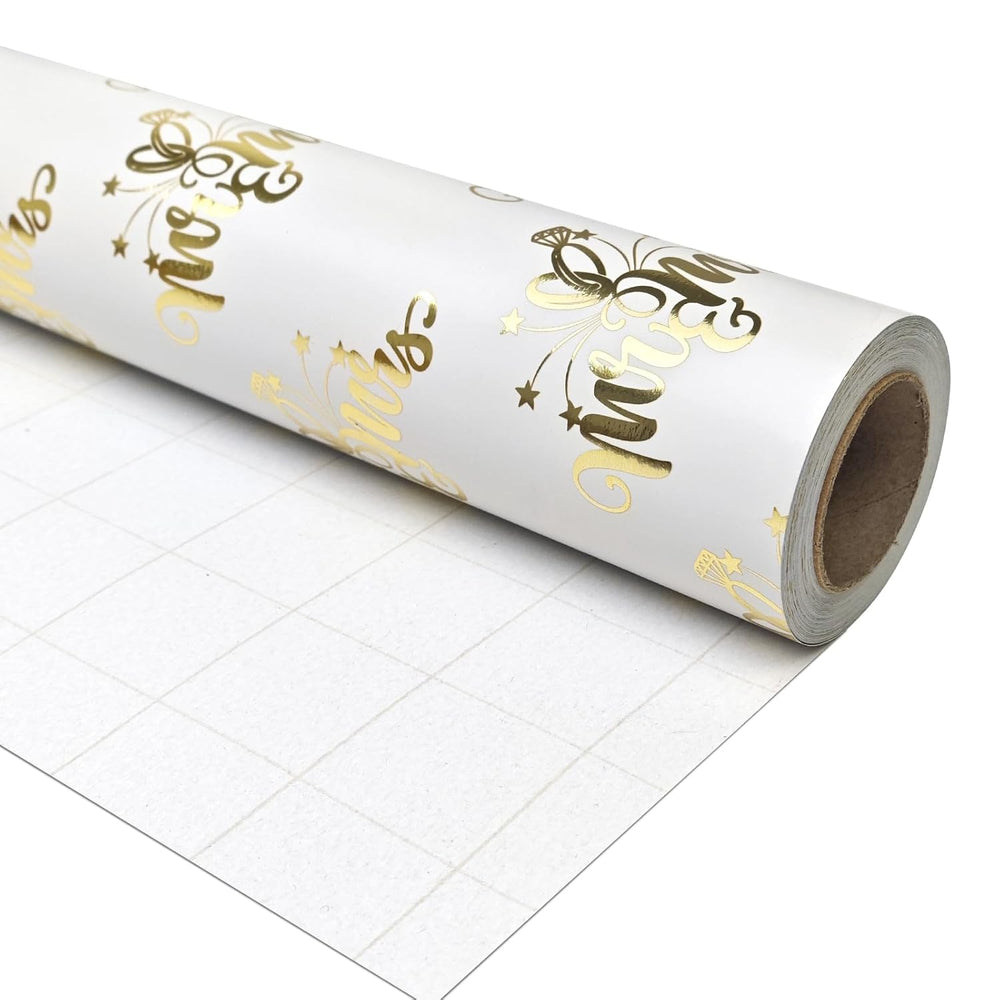 | Mini Size: Including 1 Rolls.It Measures 17 Inches Wide And 32.8 Feet Long(47.3 Sq.Ft.Ttl.). It Is About 1/2 The Width Of The Standard Size, Perfect For Medium And Small Gifts. Versatile Designs: Each Mini Roll Of Premium Wrapping Paper Has A Elegant Designs: "Mrmrs" Lettering With Gold Foil Gift Wrapping Paper With Cut Lines On Reverse.These Gift Wrap Are Sure To Delight The Person Receiving The Birthday Present! No Crease: Comes In Roll Form Consisting Of 1 Separate Individually Wrapped In Plastic, Not Folded So No Creases!