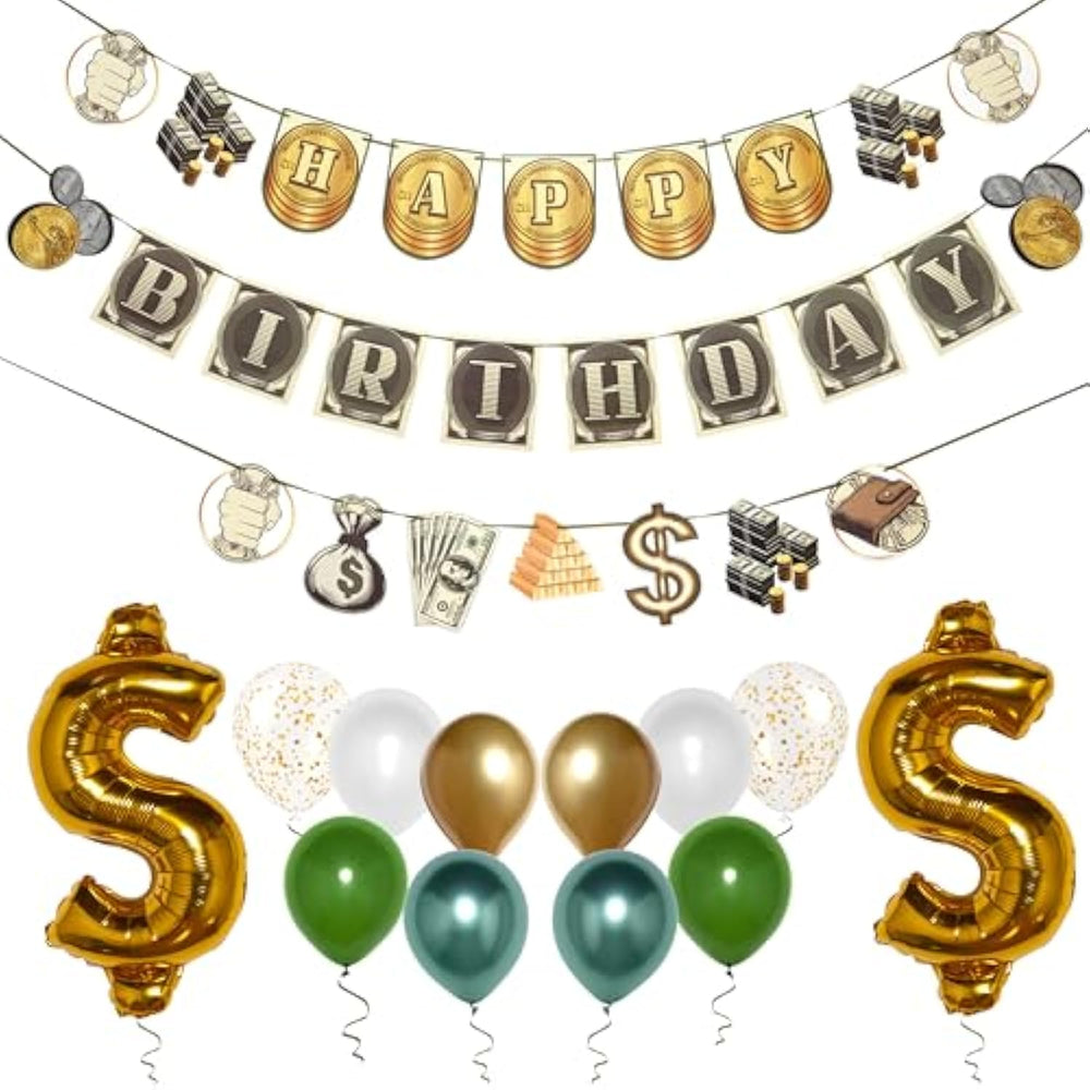 Show Me The Money Magic: Transform Your Celebration Into A Dazzling Display Of Wealth With Our Money-Themed Party Decorations. Experience Luxury And Opulence At Every Turn, Making Your Love Money Party Not Just A Gathering, But A Grand Statement Of Style And Affluence | Luxury Party Essentials: Step Into A World Of Riches With Our Money Party Theme Kit! This Exclusive Set Includes A Pre-Strung Happy Birthday Money Banner, 8X Vibrant Latex Balloons 12", 2X Confetti Balloons 12", And 2X $ Money Balloons. Perfect For Adding A Splash Of Elegance To Your Monopoly Decorations, Co Birthday Party Decorations, Or Any Dollar Sign Decorations. | Vegas Vibes At Your Fingertips: Bring The Thrill Of Co Decoration And Poker Birthday Party Decorations Nights Into Your Home. Our Pre-Strung, Easy-To-Hang Dollar Bill Banner And Dollar Sign Balloon Combo Makes Decorating A Breeze, Leaving More Time For Fun And Games! | Affluence Unleashed For Every Age: Dive Into A Sea Of Wealth With Our Money Theme Birthday Party Decorations. Perfect For Any Age, These Decorations Bring A Touch Of The Millionaire Lifestyle To Your Monopoly Or Gangster-Themed Celebrations, Making Every Guest Feel Like They'Ve Struck It Rich! | Brand Promise: We Take Pride In Our Quality Products, So We Assure Your Satisfaction With A Promise. If For Any Reason You Are Unhappy With Our Fake Money Decorations, Just Reach Out! |