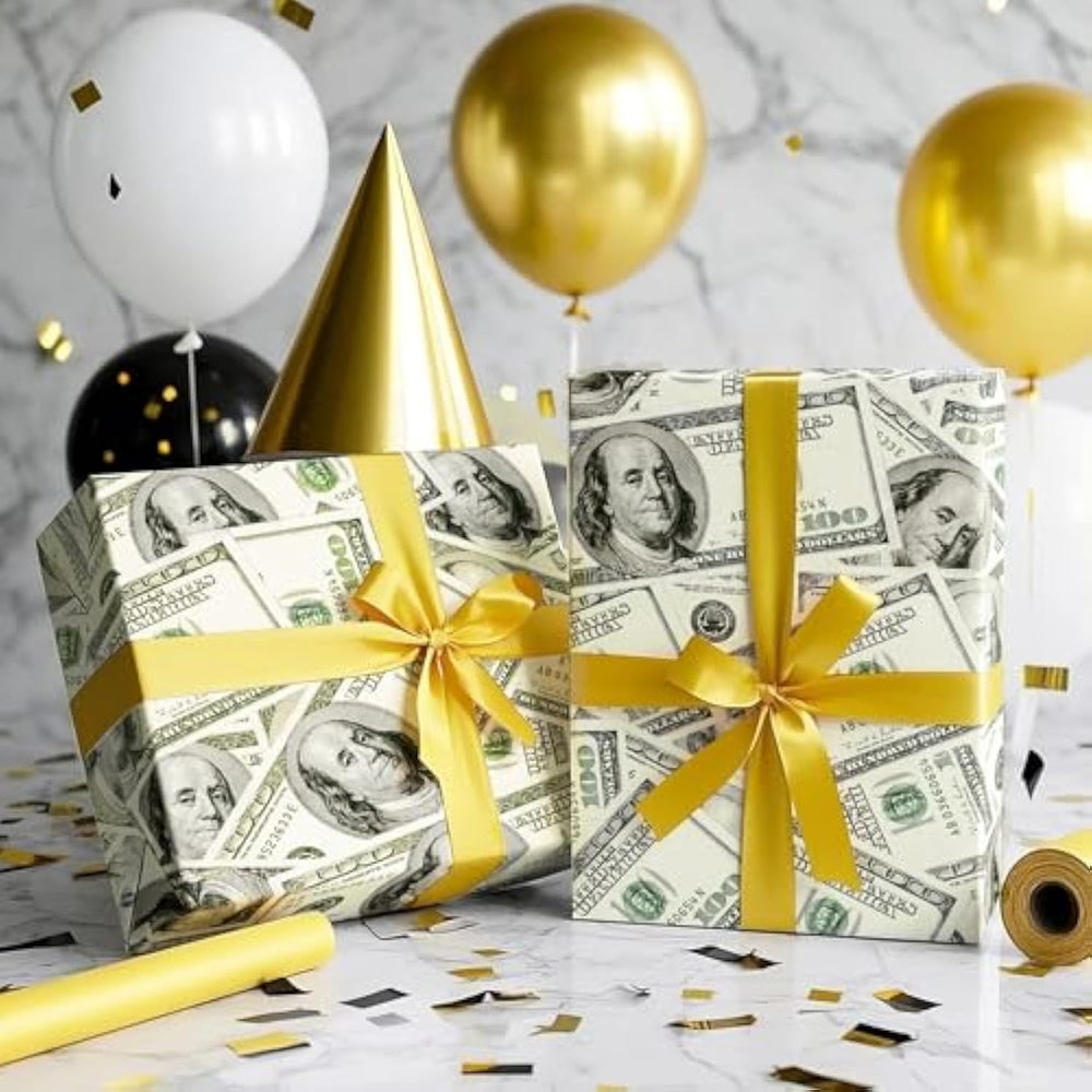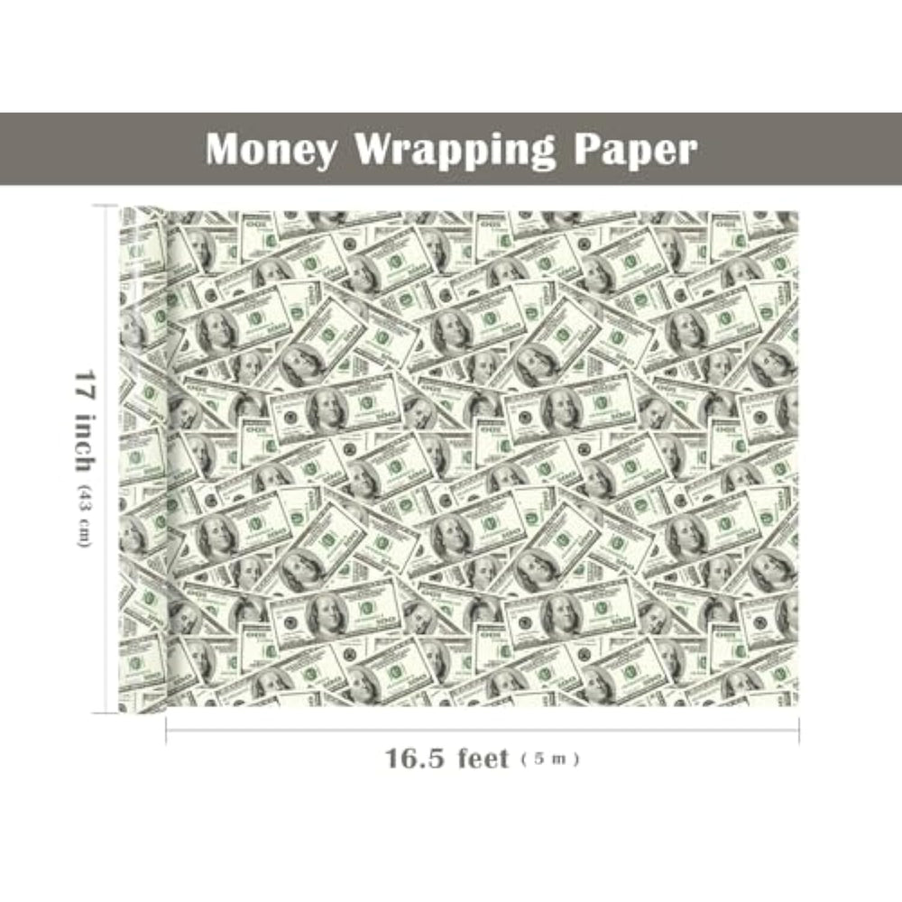 Perfect Size: Each Roll Measures 17 Inch Wide X 16.5 Feet Long. Providing You With A Total Of 23.25 Square Feet Of Paper, Perfect For Any Small Or Medium Sized Gift. | Money Themed Design: Vivid Pattern Of $100 Dollar Bills, Creating An Eye-Catching And Unique Look, Perfect For Gifts Related To Financial Achievements, Business Milestones, Or For Those With A Sense Of Humor About Money. | Premium Quality: Created With High-Quality Paper Materials, Thick And Not Easily Tear Or Rip. Item Came With Shrink Film To Prevent Wrapping Paper From Scratches And Reduce Dust. | Use All Occasion: Perfect For Not Only For Birthday Gifts But Also For Money Themed Parties, Holidays, And Craft Projects, Making It A Versatile Choice For Different Celebrations. | Quality