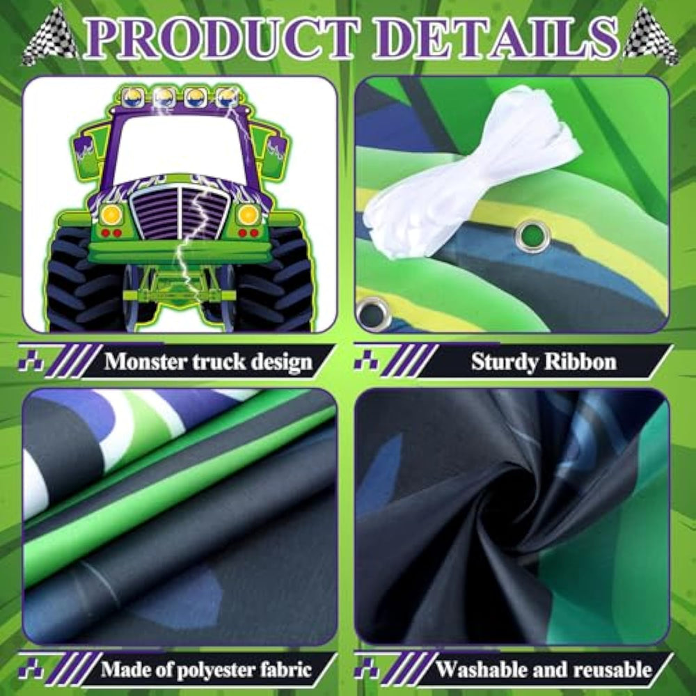 | Package Contain: The Package Includes 1 Large 70*67-Inch Monster Truck Photo Booth Props, Complete With 2 Ropes For Easy Hanging And 1 Adhesive Dot For Secure Placement. Everything You Need To Set Up Your Perfect Photo Backdrop Is Included For A Hassle-Free Party Decoration Experience. | | Durable Material: This Large Monster Photo Backdrop Party Banner Is Made Of High-Quality, Tear-Resistant Fabric. It’S Sturdy Enough To Withstand The Excitement Of A Lively Party While Still Maintaining Its Vibrant Appearance. | | Monster Truck Design: The Standout Monster Truck Design Is The Centerpiece Of This Banner, Featuring Vibrant Colors And Bold Graphics. It’S The Ultimate Way To Create A Memorable Atmosphere For Your Event, Especially For Fans Of Trucks And Adventure! | | Wide Range Of Use: The Green Purple Monster Truck Banner Is Perfect For A Variety Of Events, Including Birthday Parties, Baby Showers, Gender Reveal Celebrations, Or Any Monster Truck-Themed Gathering. It Adds The Right Touch Of Fun To Make Your Event Unforgettable. | | Easy Installation: Setting Up Your Monster Truck Happy Birthday Is A Breeze With Pre-Made Grommet Holes For Easy Hanging. Simply Hang It On A Wall, Door, Or Use It As A Backdrop For Your Photo Booth To Create An Instant Party Scene! | |