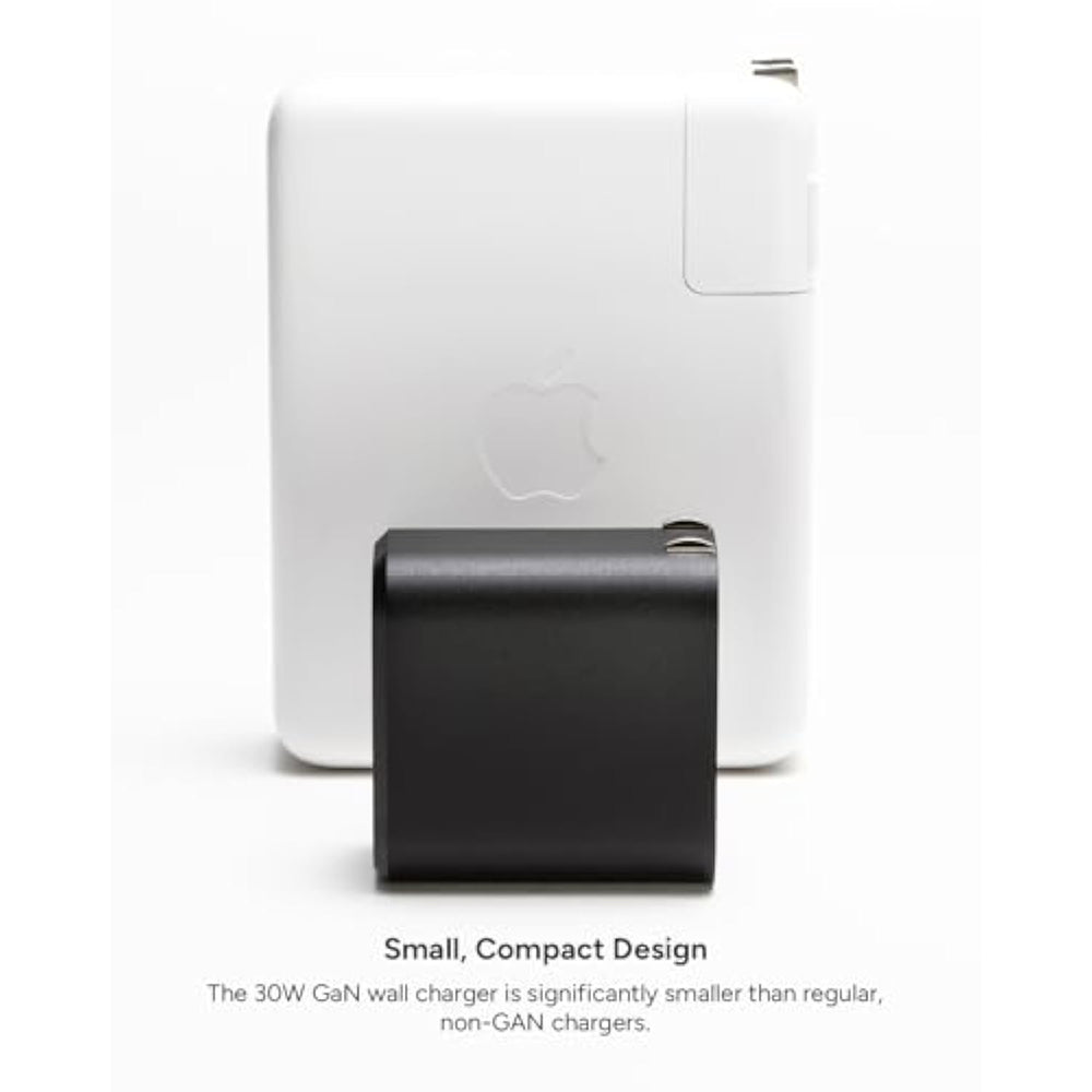 | 30W HIGH-SPEED USB-C CHARGING: Rapidly charge your phone, tablet, or laptop with up to 30W power output from the USB-C PD port. Boost your iPhone from 0-50% in just 30 minutes | | ADVANCED GAN TECHNOLOGY: Benefit from the latest Gallium Nitride (GaN) technology, providing faster, cooler, and more efficient charging compared to traditional chargers | | UNIVERSAL COMPATIBILITY: Charge a wide array of USB-C compatible devices quickly and efficiently, from smartphones to tablets and laptops | | TRAVEL-FRIENDLY DESIGN: Compact and lightweight with foldable prongs, perfect for travel and on-the-go charging needs | | ECO-FRIENDLY BUILD: Constructed from up to 50% post-consumer recycled plastics, this charger supports sustainable practices while delivering powerful performance | |