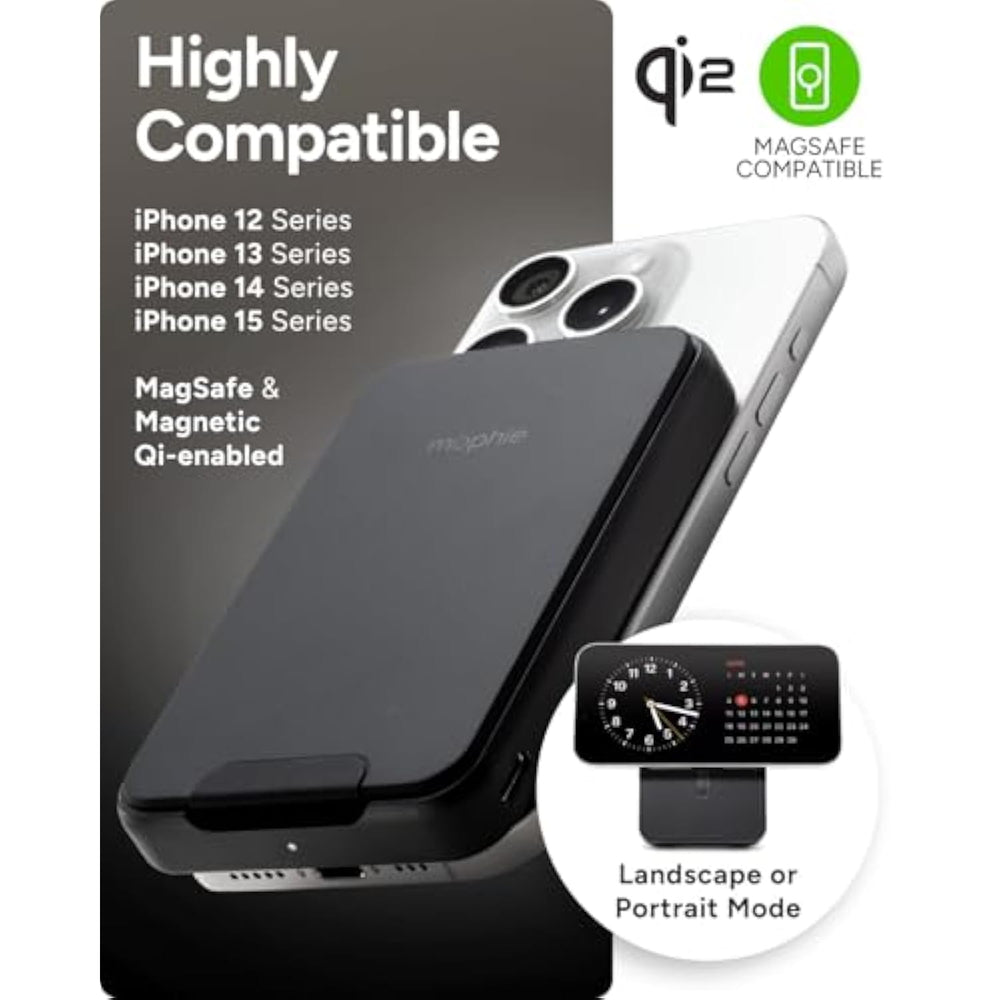 | FULL CHARGE CONVENIENCE: Gain up to 100% extra battery for on-the-go phone usage with the 5000mAh internal battery | | MAGSAFE COMPATIBILITY: Seamlessly snaps onto MagSafe enabled iPhones for reliable and efficient wireless charging | | HANDS-FREE VIEWING: Includes an integrated stand for comfortable viewing in portrait or landscape modes while charging | | DUAL-PURPOSE USB-C PORT: Utilize the USB-C port to recharge the juice pack mini or power another device alongside | | BUILT-IN KICKSTAND FEATURE: The robust stand supports hands-free use, making it ideal for video