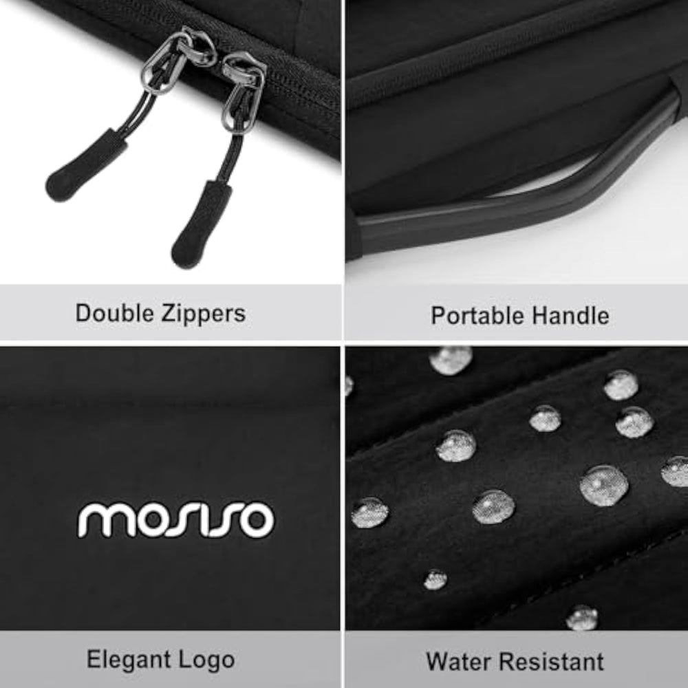 | Internal dimensions: 13.58 x 9.64 x 1.18 inches (L x W x H); External dimensions: 14.17 x 10.23 x 1.18 inches (L x W x H). Front raised pocket dimensions: 13.77 x 6.88 inches (L x W), front horizontal hidden pocket dimensions: 11.61 x 6.9 inches (L x W). | | 360 degree all around protective reinforced interior edge briefcase carrying case bag protect your laptop from any accidental dropping. Extendable handle design makes it to carry your laptop around in comfort, you can also tuck away the handle. Side opening zipper design, avoid accidental dropping of your laptop while carrying. 2 front zipper pockets provide enough space to keep mouse, earphone, pens and notepads, offering added convenience. | | The laptop sleeve with front 2 organizer zipper pockets outer polyester fabric of the case enable you to carry your laptop / notebook / Ultrabook computer in a uniquely sleek style. Features a polyester foam padding layer and fluffy cushion for bump and shock absorption and protection of your device against dust, dirt, bump, shock and accidental scratches. | | Considerate design is the back trolley suitcase belt for ease use during business trip. It is really convenient for your happy journey to any where. Slim and lightweight; does not bulk your laptop up and can easily slide into your briefcase, backpack, or other bag. This protective carrying sleeve case cover bag with handle and pockets is ideal for you to take your laptop out. | | Compatible with MacBook Air 13 13.3 13.6 inch M3 A3113 M2 A2681 M1 A2337 A2179 A1932 A1369 A1466 2010-2025, compatible with MacBook Pro 14 inch 2025-2021 M4 A3112 A3185 A3401 M3 A2918 A2992 M2 A2779 M1 A2442, compatible with MacBook Pro 13 2008-2025 M2 A2338 M1 A2251 A2289 A2159 A1989 A1708 A1706 A1425 A1502 A1278; Compatible with Surface Laptop 13.8/Surface Book 3/2/1 13.5/Surface Laptop 4/3/2/1 13.5; Compatible with Dell XPS/Latitude 13; Compatible with HP Elitebook/Spectre/Envy/Stream 13. | |