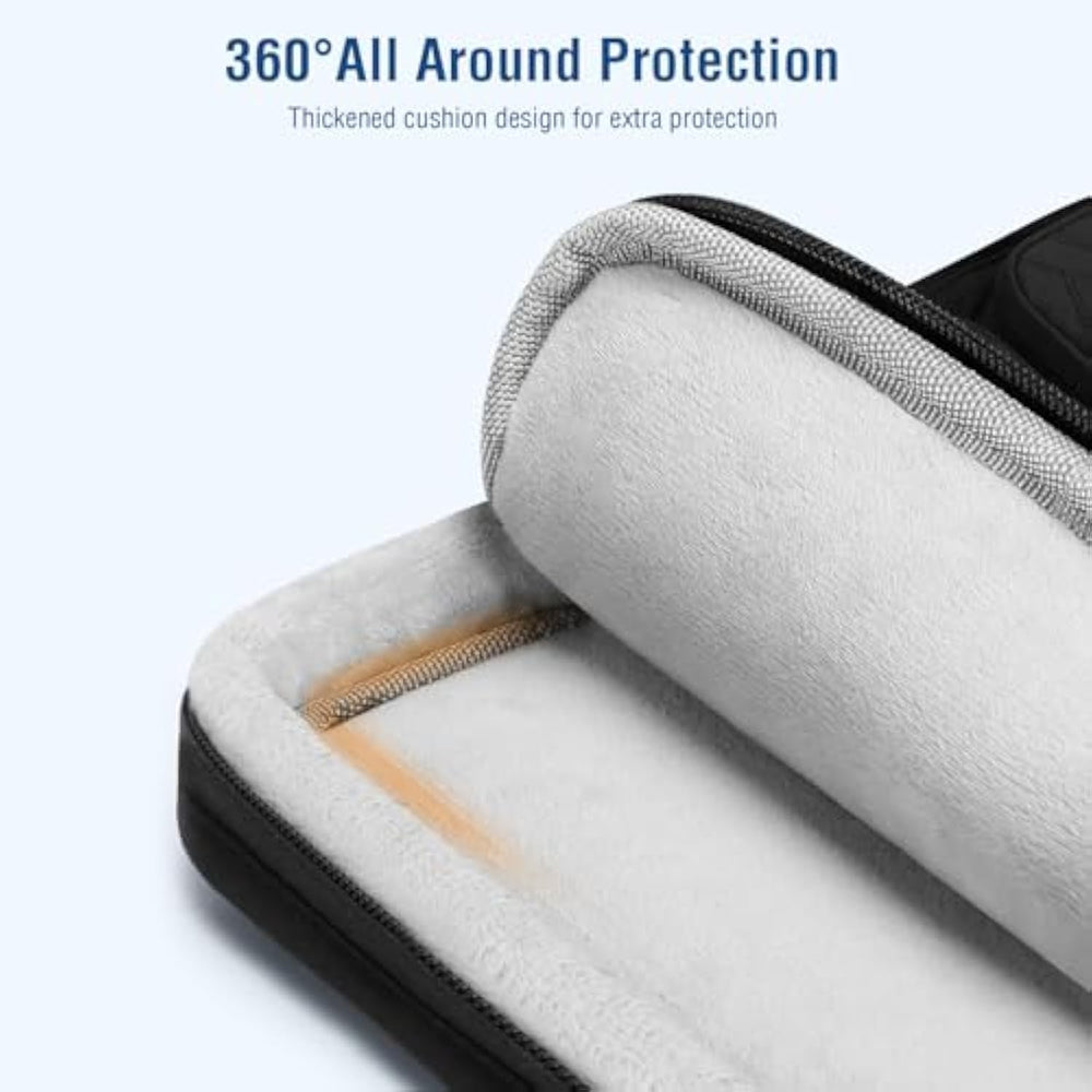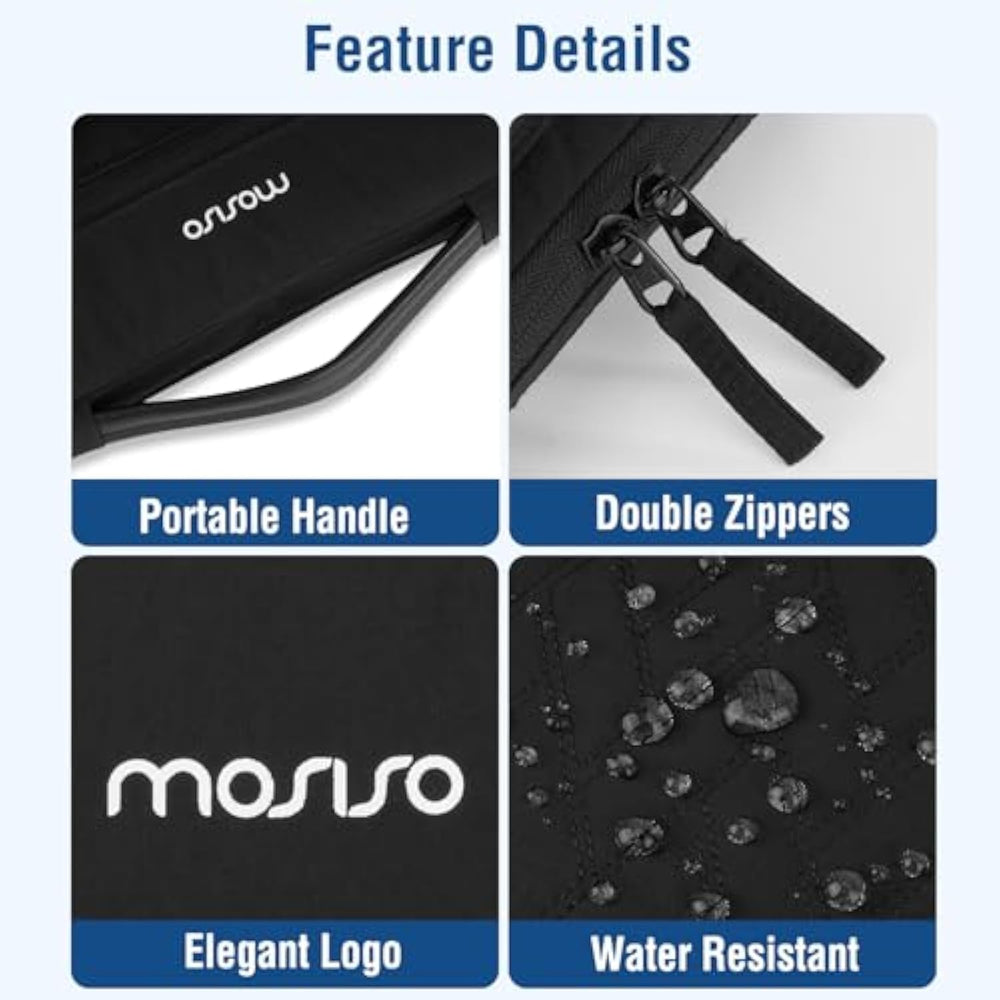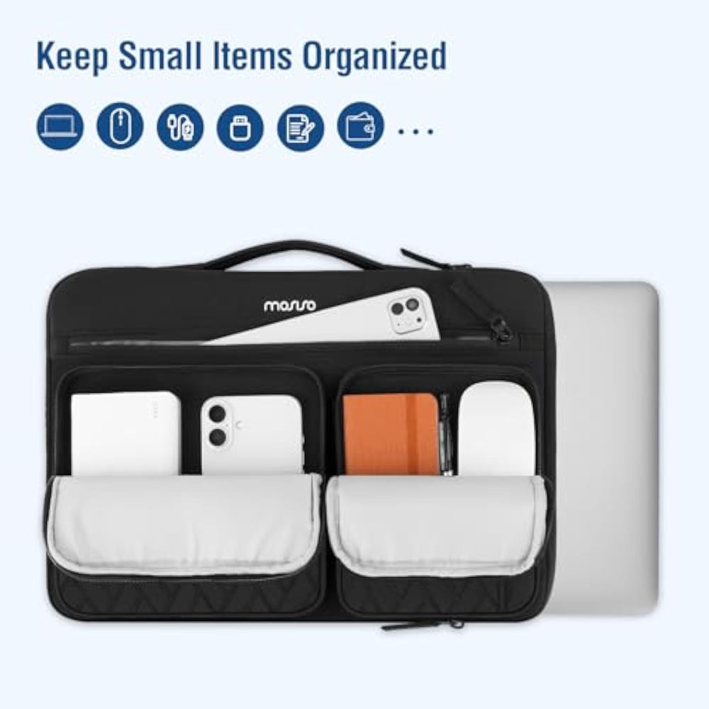 | Internal Dimensions: 15.55 x 10.43 x 1.57 inches (L x W x H); External Dimensions: 15.74 x 11.41 x 1.57 inches (L x W x H). Front left pocket dimension: 7.87 x 7.28 inches (L x W). Front right pocket dimension: 7.87 x 5.9 inches (L x W).Front upper pocket dimension:13.5 x 11.02 inches (L x W) | | 360 degree all around protective reinforced interior edge briefcase carrying case bag protect your laptop from any accidental dropping. Extendable handle design makes it to carry your laptop around in comfort, you can also tuck away the handle. Side opening zipper design, avoid accidental dropping of your laptop while carrying. 2 raised 1 flapover pockets are convenient for quick-access and store cell phone, wallet, keys and other small items. | | Made with parallelogram quilted polyester material, a top opening zipper gliding smoothly and allows convenient access to your device. 2 separate raised 1 horizontal front organizer pockets provide enough space to keep mouse, earphone, pens and notepads, offering added convenience. | | Considerate design is the back trolley suitcase belt for ease use during business trip. It is really convenient for your happy journey to any where. Slim and lightweight; does not bulk your laptop up and can easily slide into your briefcase, backpack, or other bag. This protective carrying sleeve case cover bag with handle and pockets is ideal for you to take your laptop out. | | Compatible with MacBook Pro 16 inch 2025-2019 M4 A3403 A3186 M3 A2991 M2 A2780 M1 A2485 A2141, compatible with MacBook Pro Retina 15.4 A1398; Compatible with Surface Book 3/2/1 15; Compatible with ASUS ZenBook/VivoBook Go 15.6; Compatible with Lenovo Essential IdeaPad/IdeaPad 3i Chromebook/IdeaPad 1/V15 15.6; Compatible with Acer Aspire Go 15.6; Compatible with NIMO 15.6, Compatible with HP Victus/ProBook/Spectre/Envy/Omen/Pavilion 15.6; Compatible with Dell Inspiron/XPS/Vostro/Latitude 15.6. | |