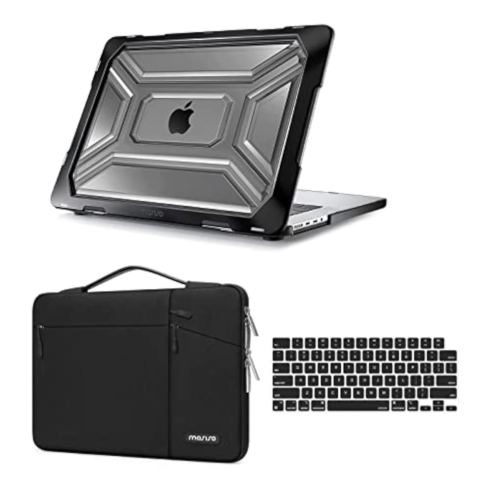 | Designed ONLY to be compatible with MacBook Pro 16 case 2021 2022 2023 2024 2025 Release M4 Pro / M4 Max / M3 Pro / M3 Max / M2 Pro / M2 Max / M1 Pro / M1 Max Chip with Liquid Retina XDR Display Touch ID (models: A3403 A3186 A2991 A2780 A2485). | | Please kindly check the model number "Axxxx" on the back of the laptop before your purchase, make sure you choose the exact same model number as the listing title stated "A3403" or "A3186" or "A2991" or "A2780" or "A2485" that compatible with MacBook Pro 16 inch cover. WARNING: This case is NOT compatible with other model laptops. | | Case dimension: 14.05 x 9.8 x 0.67 inch, compatible with MacBook Pro M4 16 inch case, compatible with MacBook Pro M3 16 inch case, compatible with MacBook Pro M2 16 inch case and compatible with MacBook Pro M1 16 inch case (models: A3403 A3186 A2991 A2780 A2485) Pro Max Chip with Liquid Retina XDR Display Touch ID with dimension: 14.01 x 9.77 x 0.66 inch (2025 2024 2023 2022 2021 Released). NO Cut Out design. | | The protective laptop sleeve with handle pockets carrying bag is made of polyester material, protect your laptop against accidental spills. Slim and lightweight, does not bulk your device up and can easily slide into your briefcase, backpack or other bag. Ideal for business, daily and travel. Fully vented for heat disbursement, fully access to all buttons and features. Snap on design, easy on easy off. Plug your cable or headset without removing the case. | | Including 1 keyboard cover to protect your keyboard against spills. | |