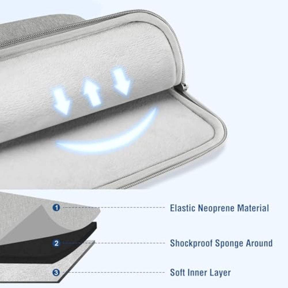 | Internal dimensions: 15.55 x 0.79 x 11.42 inches (L x W x H); External dimensions: 16.14 x 0.79 x 11.81 inches (L x W x H). The front vertical side pocket dimensions: 11.81 x 11.02 inches (L x W). | | Made with polyester material, a top opening zipper gliding smoothly and allows convenient access to your device. Slim and lightweight, does not bulk your device up and can easily slide into your briefcase, backpack or other bag. | | Extra pocket in front provides enough space to keep mouse, earphone, pens and notepads, offering added convenience. This protective carrying sleeve case cover bag with pocket is ideal for you to take your laptop notebook computer out. | | Features a polyester foam padding layer and fluffy fleece fabric lining for bump and shock absorption and protection of your device against bump, shock and accidental scratches. | | Compatible with MacBook Pro 16 inch 2025-2019 M4 A3403 A3186 M3 A2991 M2 A2780 M1 A2485 A2141, compatible with MacBook Pro Retina 15.4 A1398; Compatible with Surface Book 3/2/1 15; Compatible with ASUS ZenBook/VivoBook Go 15.6; Compatible with Lenovo Essential IdeaPad/IdeaPad 3i Chromebook/IdeaPad 1/V15 15.6; Compatible with Acer Aspire Go 15.6; Compatible with NIMO 15.6, Compatible with HP Victus/ProBook/Spectre/Envy/Omen/Pavilion 15.6; Compatible with Dell Inspiron/XPS/Vostro/Latitude 15.6. | |