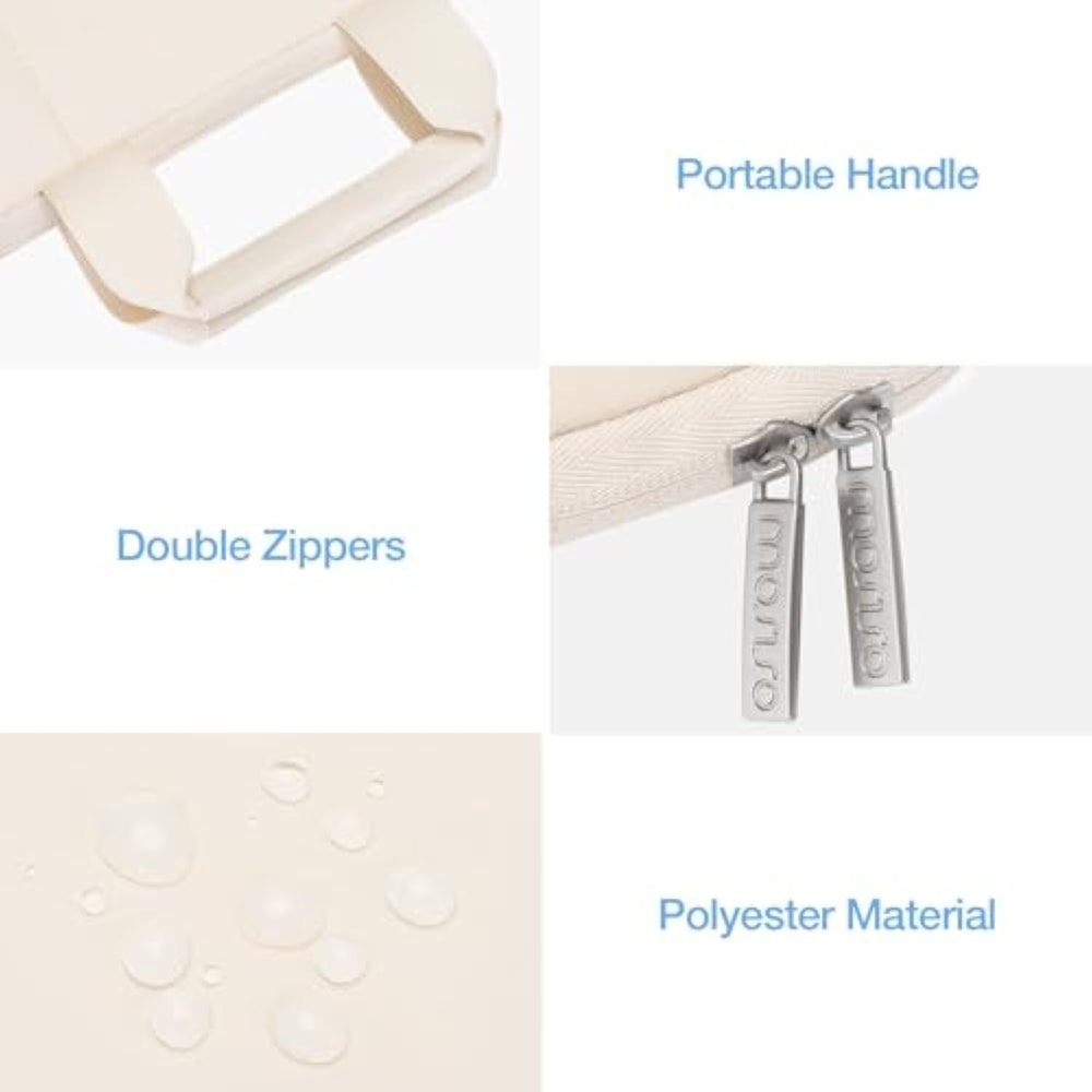 | Dimensions: Internal Dimensions: 13.58 x 9.64 x 0.79 inches (L x W x H); External Dimensions: 13.97 x 10.04 x 0.79 inches (L x W x H). | | Quilted Puffy Design: Made with durable rectangle quilted puffy soft touch polyester material, features a polyester foam padding layer and fluffy fleece fabric lining. Protect your laptop from bump, shock and accidental scratches. | | Top Opening Zippers Design: Top-loading zippers on the sleeve glide smoothly and allow convenient access to your laptop computer. Slim and lightweight, does not bulk your device up and can easily slide into your briefcase, backpack or other bag. | | Easy to Carry with Handle: This cute quilted puffer sleeve case with handle is perfect for women using for working, traveling, daily use and business travel. This durable protective carrying sleeve case cover bag is ideal for you to take your laptop out. Durable handle design makes it to carry your laptop around in comfort. | | Compatible with MacBook Pro 14 inch 2024-2021 M4 A3112 A3185 A3401 M3 A2918 A2992 M2 A2779 M1 A2442 Pro Max with Touch ID, compatible with MacBook Air 13 inch A1369 A1466 2010-2017, compatible with MacBook Pro 13 inch A1425 A1502 A1278 2008-2015; Compatible with Surface Book 3/2/1 13.5, compatible with Surface Laptop 4/3/2/1 13.5; Compatible with Dell Latitude 14; Compatible with HP Elitebook 13.3/Spectre X360 13.3/Envy 13/Stream 13/Stream 14/Pavilion 14; compatible with Lenovo IdeaPad 13/14. | |