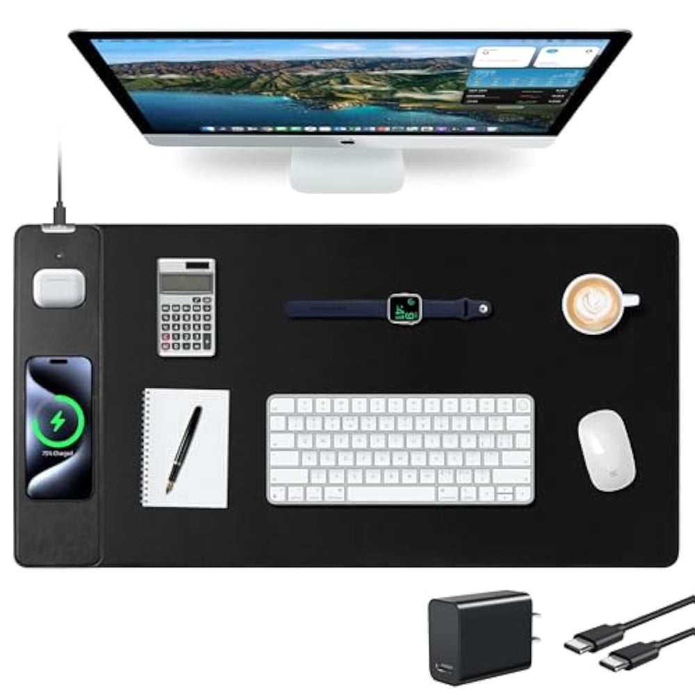 | Wireless Charging Mouse Pad: Support 2 Charging Area: Built In 15W For Wireless Phone Charging And 5W For Airpods Charging. Compatible With Iphone 16/15/14/13/12/11/X/Xr/Xs/8 Series, Samsung Galaxy S23/S22/S21/S20/S10/S9/S8/Note 9/8, Airpods 3Rd/ Airpods Pro 2Nd/Airpods Pro And Other Smartphones That Support Wireless Charging. | | Built-In Raised Magnetic Wireless Charger: The Raised Phone Charger Enhances Camera Protection And Features Strong Magnetic Absorption For More Accurate, Convenient, And Fast Positioning. The Magnetic Wireless Charging Function Is Compatible Only With Iphone 16/15/14/13/12 Series. | | Extra Large Extended Mouse Pad: The Size 31.5 X 15.7 X 0.16 Inch Of This Xxl Large Mouse Pad Will Fit Your Desktop Perfectly. Provides Ample Room To Fit Your Gaming Mouse, Full-Size Mechanical Keyboard, And Other Desk Items. Keep Your Desk Clean And Uncluttered With The Freedom To Configure Your Setup As Desired. Helps To Improve The Gaming Experience For Gamers Or The Work Efficiency In The Office. | | Get The Best Control: Large Desk Mat Is Made Of High Elasticity Natural Rubber, This Mouse Pad With Wireless Charger Is Non-Toxic And Has No Hazardous Substances, Safe For Use. Anti-Slip Base Can Firmly Grip Your Desktop And Nylon Stitched Edges Make The Desk Pad Much More Durable And Longer Lasting. Easily Roll Up The Desk Pad Without Getting Wrinkless Or Creases. | | Get The Best Control: Large Desk Mat Is Made Of High Elasticity Natural Rubber, This Mouse Pad With Wireless Charger Is Non-Toxic And Has No Hazardous Substances, Safe For Use. Anti-Slip Base Can Firmly Grip Your Desktop And Nylon Stitched Edges Make The Desk Pad Much More Durable And Longer Lasting. Easily Roll Up The Desk Pad Without Getting Wrinkless Or Creases. | | Waterproof Coating: This Keyboard Pad Can Effectively Prevent Damage From Spilled Drinks Or Other Accidents. When Liquid Splashes On The Coating Surface, It Will Form Into Water Drops And Slide Down. Easy To Clean With A Damp Cloth And Will Not Delay Your Work Or Game. | | What You Get: 1X Wireless Charging Mouse Pad, 1X 20W Pd Power Adapter, 1X 6.56Ft Usb-C To Usb-C Woven Cable, 1X User Manual. Our 12-Month Satisfaction Assurance Instills Confidence In Your Purchase. | |