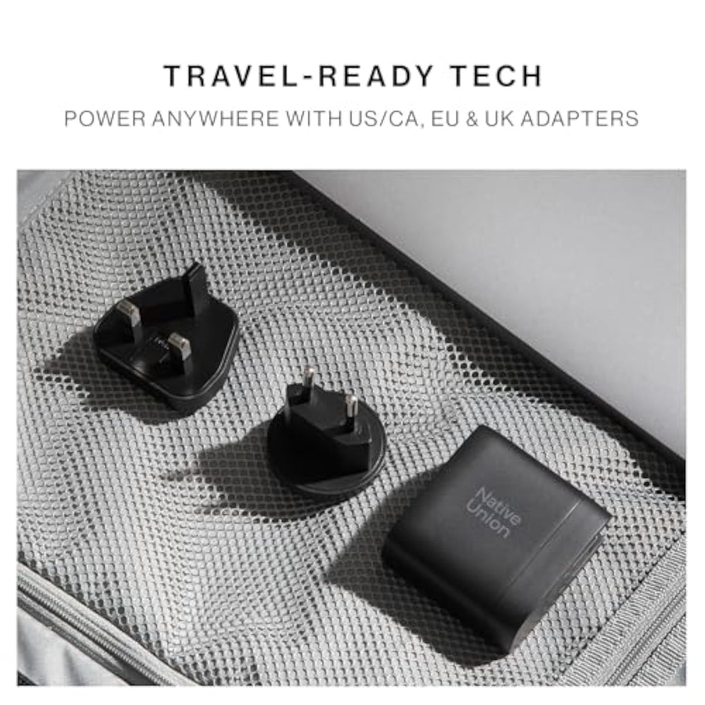 | 67W HIGH SPEED CHARGING: Fast charge all your devices up to 67W. The 67W Power Delivery-enabled USB-C port supports full-speed charging for your MacBook Pro 14" or powers your iPhone up to 50% in under 30 minutes | | MULTI-DEVICE POWER: Featuring 2 USB-C ports and 1 USB-A port, charge all your new and old devices and up to 3 devices at once. Dynamic power allocation optimizes power distribution between your devices, and directs the full 67W of power to the bottom USB-C port when charging a single device. | | LIGHTER SMALLER: Utilizing advanced and power efficient GaN technology for the smallest and lightest charger without compromising performance. Pocket-sized, but still packs a punch. | | SAFETY FIRST: Safeguard your devices while powering up with built-in overvoltage, overcurrent overheating protection | | INTERNATIONAL ADAPTERS: Perfect as your travel charger, power up all your devices from all over the world with US/CA, EU, and UK adapters and a small pouch for easy storage and portability. | |