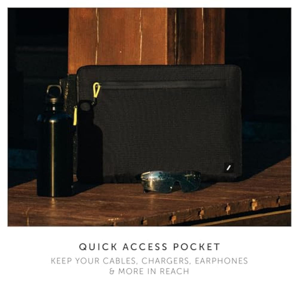 | COMPATIBILITY: Designed for MacBook Pro 13” (2016 later), MacBook Air 13” (2018 - 2020), MacBook Air (M3, 2024), MacBook Air (M2, 2022), and most 13-inch laptops (? L32.4cm x W23.3cm) | | EVERYDAY PROTECTION: A minimalist design with a sporty, active-inspired touch, with a color contrasted zipper and exterior pocket for a modern detail. Carry and protect in style. | | DURABLE RIPSTOP FABRIC: Crafted with ripstop fabric, a reinforced material that boasts high durability and water-resistance while still being lightweight and flexible. | | PROTECTED FROM ALL ANGLES: Designed with precise, form-fitting dimensions and an inner foam padding so your laptop is snug, secure, and protected from all angles. Features a soft interior lining, a water-resistant coating, and water-resistant zipper for extra protection. | | QUICK-ACCESS POCKET: Extra exterior pocket for quick and easy access to your cables, chargers, AirPods, notebooks and more. | |