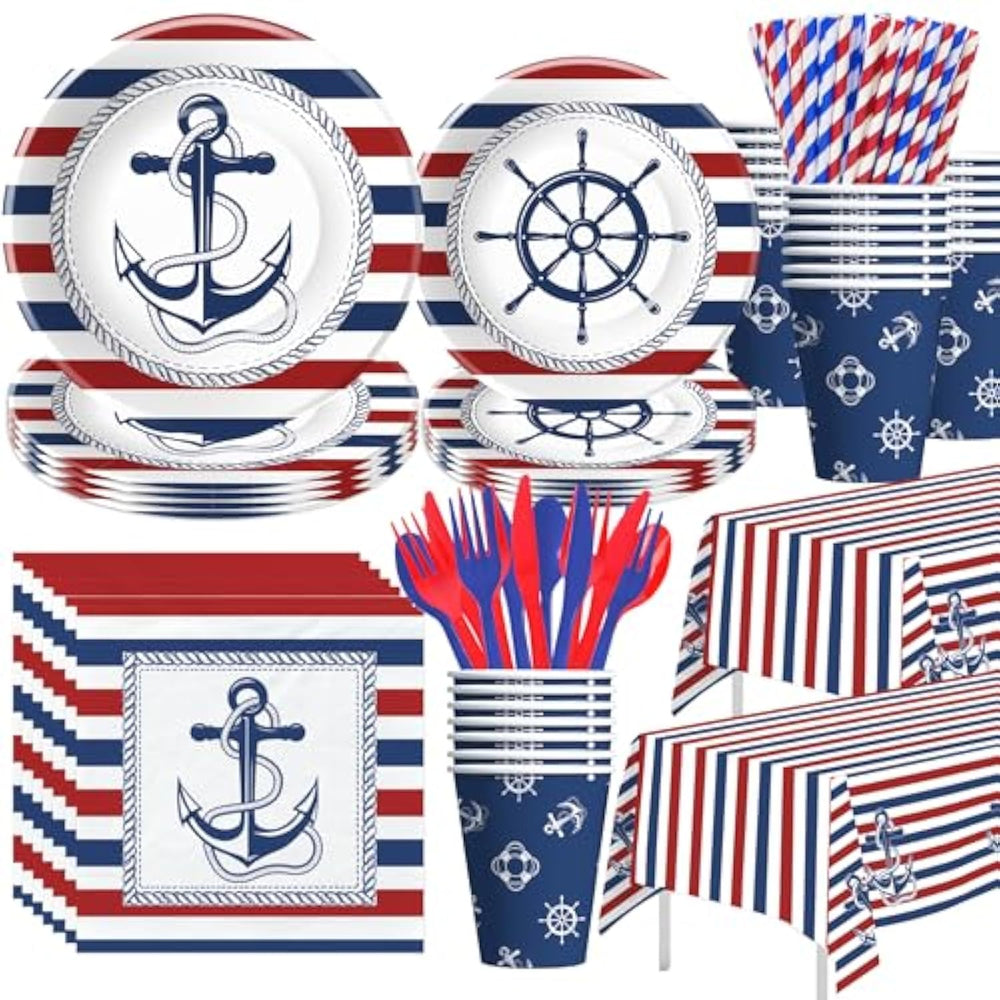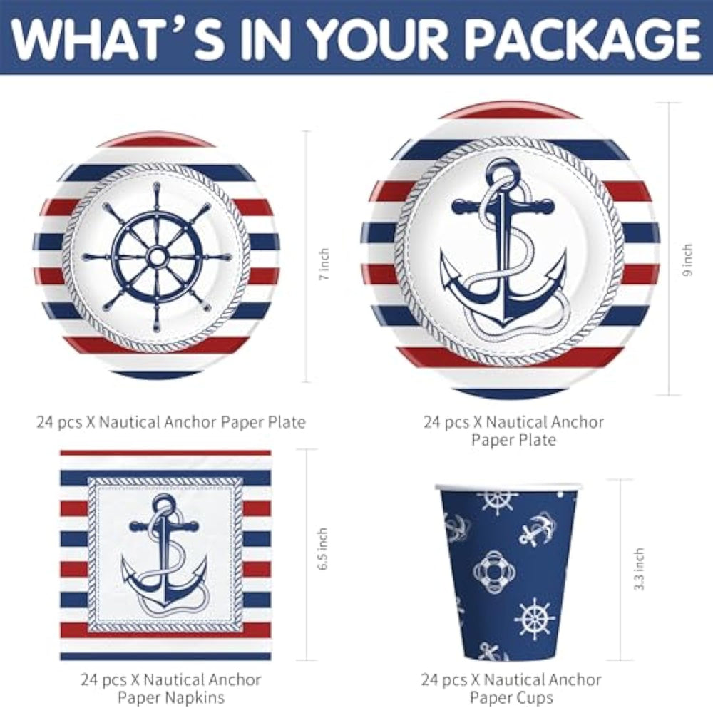 | ?Nautical Baby Shower Decorations?Set Sail For A Stylish Celebration With Our Nautical Anchor Party Tableware. Featuring Classic Nautical Elements Like Anchors, Ropes, And Navy Blue And Red Accents, It Brings The Charm Of The High Seas To Your Party Table | | ?Serve 24 Guests?This Nautical Decorations Dinnerware Set Can Accommodate Up To 24 Guests And Includes Everything You Need: 24Pcs 9'' Nautical Dinner Plates, 24Pcs 7'' Anchor Dessert Plates, 24Pcs Napkins, 24Pcs Cups, 24 Sets Of Disposable Cutlery, 24Pcs Paper Straws, 2 Pcs Nautical Anchor Tablecloths. Get These Boat Ship Nautical Party Supplies To Elevate Your Celebration | | ?Applicable Occasions?Whether You'Re Hosting A Beachside Bash, A Sailor'S Birthday Celebration, A Cruise Party, A Nautical Baby Shower, Or A Nautical-Themed Wedding Reception, Our Nautical Table Decorations Tableware Adds The Perfect Finishing Touch To Any Maritime-Inspired Event | | ?Easy To Clean?Enjoy Your Nautical Anchor-Themed Party To The Fullest Without Worrying About Cleaning Up With Our Hassle-Free Disposable Tableware Pieces. Spend More Time With Your Loved Ones As Our Nautical Birthday Party Decorations Tableware Set Can Be Easily Disposed Of After The Party | | ?Coordinates Beautifully ?This Nautical Anchor Table Decorations Coordinates Effortlessly With Other Party Decorations Like Balloons, Banners, Photo Props, And Party Favors—Making Your Setup Cohesive And Fun | |