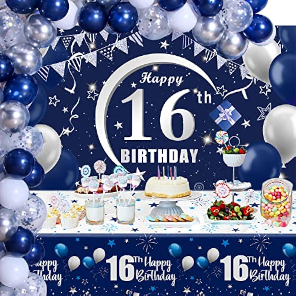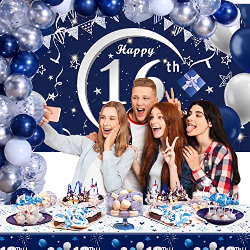 Suitable For 16Th Birthday Party - This Navy Blue 16 Year Old Birthday Decoration Balloon Arch Kit Will Add A Luxurious Ambiance To Your Indoor Or Outdoor Event And Make Your Child 16 Bday Party More Awesome With Our Beautiful Blue And Silvery Balloons Set. | Package Inclueded - 15X Dark Blue Balloons, 12X Silvery Balloons, 3X White Balloons,10X Confetti Balloons, 1X Backdrop (70*43 Inch), 1X Tablecloth (70*42 Inch),1X Ribbon,1X Arch Strip And 1X Dot Labels. Please Note That The Blue Balloon Looks Like Black Before Inflation. If It Is Inflated, The Balloon Is Blue. All Balloons Need To Be Inflated To Display The Correct Color. | Easy To Use And Carry - Balloons Are Not Stringed Together, Simple Assembly Needed. Easy To Use And Carry Everywhere. Each Foil Balloon Has A Self-Sealing Valve. Just Need To Blow The Balloons Up With Given Straw. | Superior Quality And Reusable - These Balloons Are Made Of The High Quality Material, Stronger And Longer Lasting Seal. A Sturdy Party Decoration That Can Be Reused For Birthday Party Or Other Occasions. | Only For You: Quality Is Our Top Priority, Any Product Problem Please Feel Free To