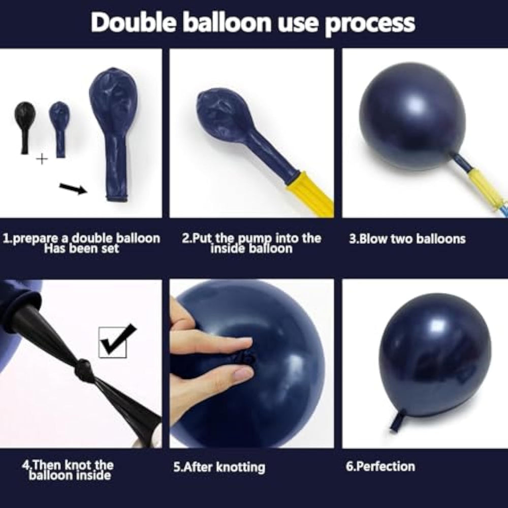 This navy blue and gold balloon arch kit includes a mix of 5", 10", 12", and 18" balloons in pearl navy, white sand, matte white, and chrome gold. The double-stuffed design makes the colors richer and the balloons thicker than standard ones, adding a full, luxurious look to your setup. Made from durable, non-toxic latex, these balloons are helium-quality and can last for days—some users report up to two weeks. The kit also comes with tools and instructions for easy assembly, making it a fun DIY activity. Perfect for birthdays, baby showers, graduations, weddings, and any blue-themed celebration.