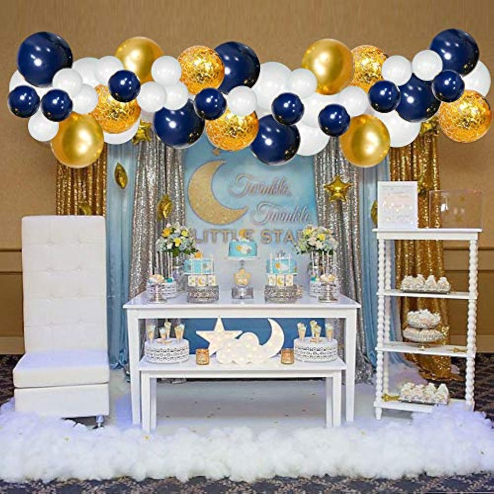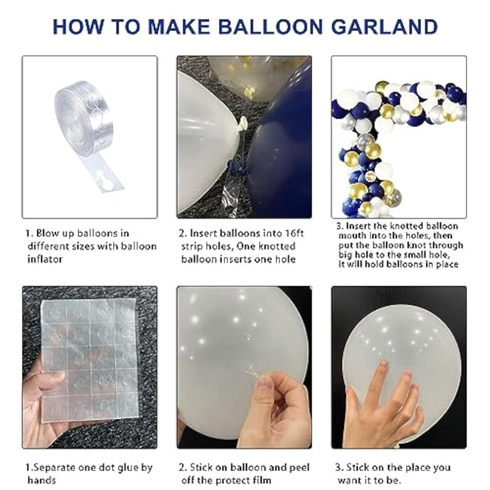 ?Diy Balloons Pack ?:These Navy Blue Balloons Garland Kit Includes 45 Pcs Navy Blue Balloons, 45 Pcs White Balloons, 15 Pcs Gold Confetti Balloons And 15 Pcs Gold Metallic Balloons. A Roll Of 16Ft Tape Strip And Dot Glue Provide A Perfect Diy Balloons Pack For Any Party Decorations. | ?Easy To Assemble?: These Navy And Gold Balloons Pack Include Three Different Size, There Have 12 Inch, 10 Inch And 5 Inch Balloons, Each Size Have Enough Qty To Let You Make A Pretty And Astonishing Balloon Garland Kit. Also Including Strip Tape And Dot Glue Which Can Help You To Make Balloon Arches More Easily. By Using Them, You Will Save Time And Energy. It Will Be A Funny Family Craft To Diy With Your Family. | ?How To Use?: These Blue Gold Balloon Garland Kit Can Both Hold Helium And Air. The Best Way To Rub The Surface Of The Confetti Balloons With A Dry Towel Or Hair And Silk. And It Is Recommended To Use A Pump To Quickly Inflate, So That Confetti Are Easier To Be Sticked. | ?Perfect Party Decorations?: These Latex Party Balloons Adding Romantic And Festive Atmosphere To Your Party, Baby Shower, Wedding, Birthday, Valentine'S Day, Anniversary Party, Bridal Shower Etc. | ?Quality ?: We Are Very Confident In The Quality Of The Balloon Garland Kit Because We Use Grade A High Quality Material. Its Production Process Is Monitored To Ensure Its Quality. After You Purchase This Product, If There Is Any Dissatisfaction, Please
