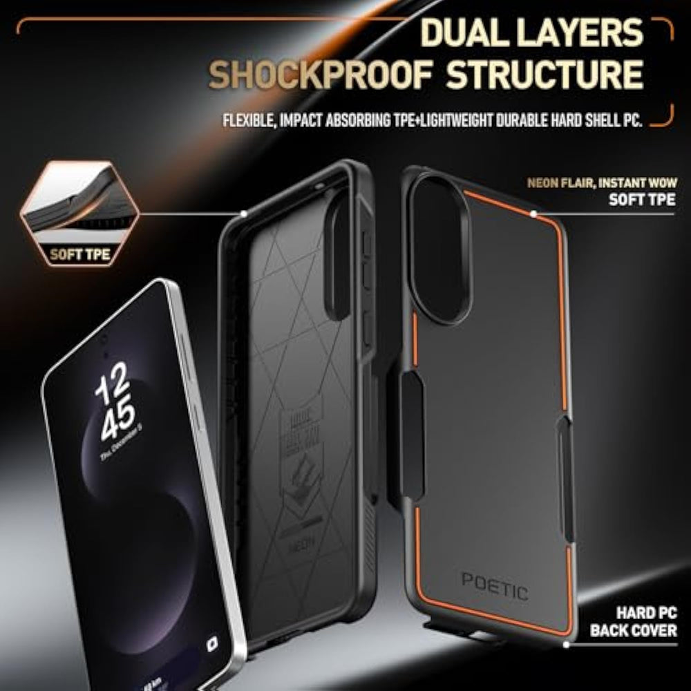 | [Shockproof Drop Tested ] S25 Edge Case - Us Mil-Std Drop Tested Used By Law Enforcement Agencies. Ultra Rugged Preferred By Athletes To Protect Your Phone From Accidental Drops, Bumps, Dust And Scratches | | [Slim Iconic Design With Orange Accent ] Galaxy S25 Edge Case - Ultra Thin And Slim Design Without Adding Any Bulk Or Weight To The Sleek Cell Phone. Easy To Slip In And Out Of Bags Pockets | | [Dual Layer Protection ] Case For Samsung S25 Edge - Flexible, Impact Absorbing Tpe + Hard, Durable Pc With Reinforced Corners, Side Body Bumper, Raised Lips Around Screens And Camera. Shockproof/Drop-Proof/Impact Resistant/Scratch-Proof | | [ Anti Slip Back Pattern ] Samsung Galaxy S25 Edge Case - Prevents Slipping From Moving Vehicles, Counter/Desk Top. Secure, Grippy Feel In The Hands To Prevent Accidental Drops | | [Design For Men And Women ] Wireless Charging Compatible, Does Not Work With Magsafe. Only Compatible With Samsung Galaxy S25 Edge 5G 2025 | |