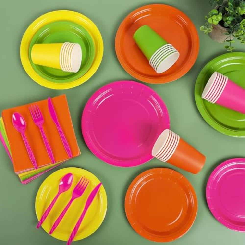 Host a vibrant celebration with our 192-piece Neon Party Supplies set, perfect for serving 24 guests. This complete set includes neon-colored plates in two sizes, napkins, cups, and durable plastic cutlery—all in bold hues of pink, orange, yellow, and green. Crafted from high-quality materials, these glow party essentials add energy to birthdays, graduations, bachelorette parties, and more. With sturdy construction and easy cleanup, it’s the perfect mix of style and convenience for any neon-themed event.