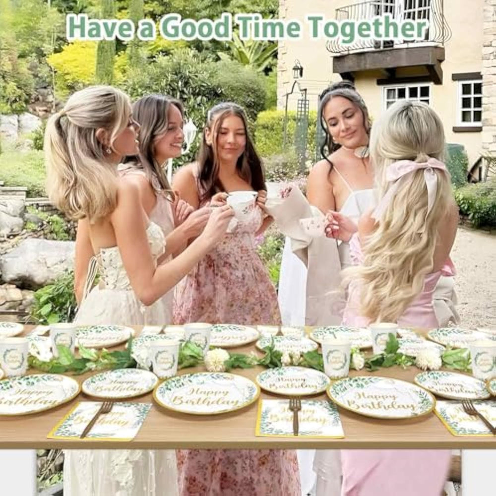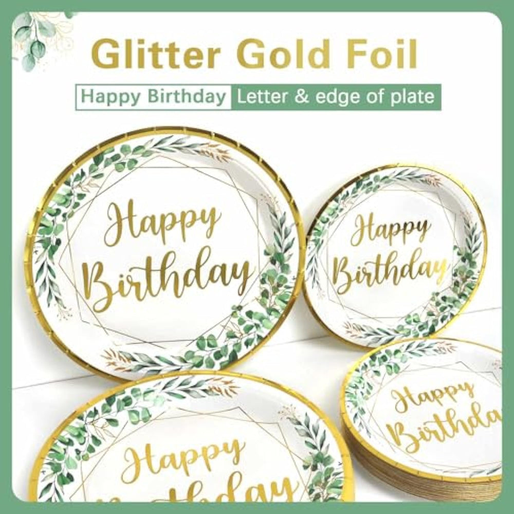 | New Party Fave: Feature Better Glitter Foil Gold Printing, Our Birthday Plates Boldly Breaks Traditional Sage Green Birthday Elements And Incorporates Popular Elegant Eucalyptus Leaves, A Big Hit! Come On! A Bright New Age For Some Sparkling New Things | | Shiny Golden New Age: One Set Fits All, Boys, Girls, Gentlemen And Ladies! A Luxe And Elegant Party Addition For Your Thrilling 1St, Sweet 16Th, 18Th, 21St, 30Th, 40Th, 50Th, 70Th Birthday Decorations And So Much More | | All In One Set: Our Happy Birthday Plates Set Comes With Every Immediate Need For Birthday. From 25 Each Of Dessert Plates, Cake Plates, Napkins To Forks. Made It So Little Need To Search For Separate Matched Pieces | | Nice Forks: Our Neutral Birthday Decorations Forks Are Made Of Food-Grade Plastic, Durable Enough, Won’T Break Easily. Just Feel Free To Handle All Foods And Dessert At Birthday Party | | Good Plates: Made Of 300Gsm Thick Cardboard, Our Sage Green Plates Are Absolutely Sturdy And Not Tear Easily To Hold A Full Plate Of Entrees. And Extra Coated Soak Proof Shield Ensures Our Birthday Plates Totally Oil And Leak Proof | |