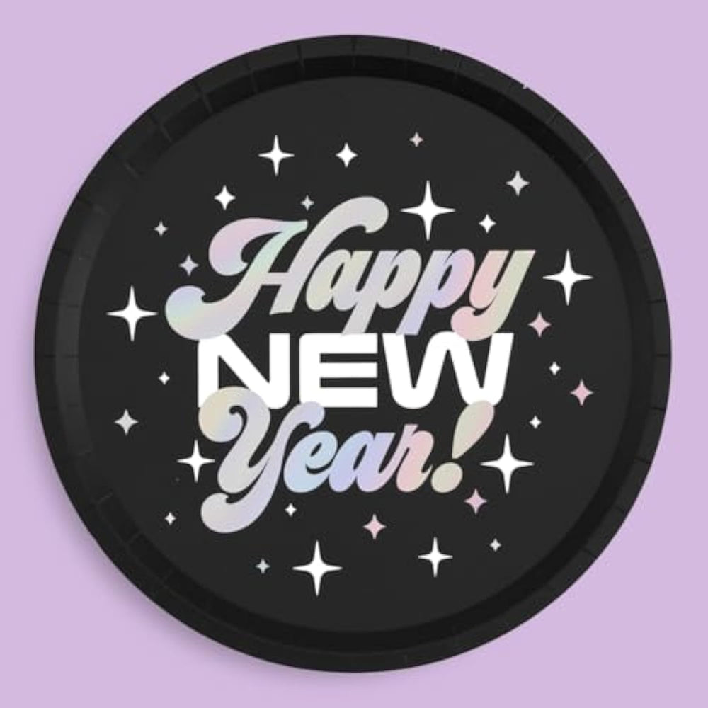 | Nye!: Our 25 Pack Of 9" Happy New Year Printed Paper Plates Are The Party Addition You'Ve Been Looking For + A Hit! | | Party All Night: Our Plates Come With A Mirrored Iridescent "Happy New Year" Printed Design On A Black Matte Paper Plate - Think Shiny And Luxe! | | Squad Approved: Leave No Bestie Behind With Our Set Of 25 Black With Foil "Happy New Year" Plates - There'S Enough For The Whole Party. | | Only The Best: Our Plates Are Made Out Of Super High Quality Paper - Sturdy Enough For That Extra Slice Of Cake! | | For Every Event: One Size Fits All! Whether You'Re Hosting A New Years Eve Party Or Having A Ball Drop Viewing Party.. Our Plates Will Look Fab! | |