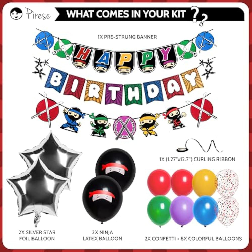 | Celebrate In Stealth Mode: Elevate Your Little Warrior'S Celebration With Our Premium Ninja Birthday Party Decorations. The Set Includes A Vibrantly Printed, Pre-Strung 6.6Ft Banner, Bringing A Burst Of Color And Ninja Flair To Any Venue. Perfect For Boys Birthday Party Decorations Or Any Aspiring Ninja! | | All-In-One Convenience: Our Ninja Birthday Party Supplies Have Everything You Need In One Package. From The Captivating Ninja Happy Birthday Banner (6.6Ft), 8X Colorful Balloons 12", 2X Confetti Balloons 12" And 2X Shuriken Foil Balloons 18" Be Ready To Impress Your Guests With A Seamlessly Themed Celebration Without The Hassle Of Separate Purchases. | | Effortless Setup, Maximum Fun: Say Goodbye To Party Planning Stress! Our Ninja Party Kit, Comes Pre-Strung And Makes Setting Up A Martial Arts Themed Party Decorations A Breeze. Hang The Banner, Inflate The Balloons, And Let The Energy And Excitement Fill The Air! | | Create Magical Memories: Ensure Your Ninja Warrior'S Birthday Is Spectacular With Our Meticulously Designed Decorations. Ideal For Ninja, Mortal Kombat, Martial Arts Birthday Or Asian-Themed Parties, Our Set Is Designed To Create A Dynamic And Exciting Party Environment That Will Be Remembered For Years To Come! | | Brand Promise: Your Satisfaction Is Our Celebration! Experience The Difference With High-Quality Ninja Themed Birthday Decorations Backed By A Brand Promise. | |