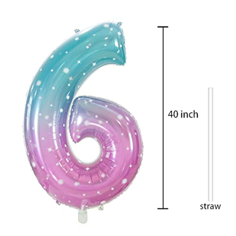 | Number Balloons: Package Include Number 6 Balloon + Straw, You Can Buy Other Numbers To Combine Together To Form Any Numbers | | Number 6 Balloon: Great 6Th Birthday Party Decorations For Boy Or Girl, Or Anniversary Photography Props | | Large Number Balloons: It’S About 40 Inch Large, Perfect Big Number Balloon For Your Parties | | Premium Material: Space Gradient Number Balloons, Beautiful And Shiny, Number Balloons Are Made Of Premium Aluminum Foil, Thick And Non-Toxic | | Easy To Use: You Can Use A Straw Or Pump To Inflate A Number Balloon With Helium Or Air, Number Foil Balloons Can Float With Helium, While It Will Not Float When Filled With Air | |
