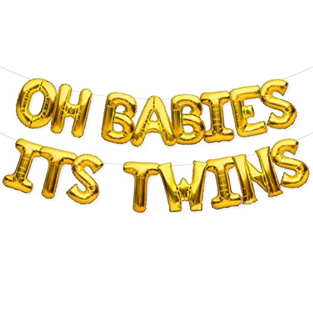 Gold "Oh Babies Its Twins" Foil Twins Baby Shower Balloons Banner That Will Stand Out And Make Your Twins Gender Reveal Party Rock. 16 Inch Tall Balloon Letters. | A Long Silver Ribbon Allows You To Adjust The Letters For Any Place. A Must Have Gender Reveal Balloons Sign. | The Balloons Made Of High Quality Themed Party Supplies. Easy Inflating/Deflating And Assembling. Includes 5.9 Inch Straw For Inflating And Deflating The Balloons And 32Feet Long Silver Ribbon. | Important: Does Not Support Helium, Can'T Float. Should Be Gently Filled 90%-95% Full With Air. Preferably Use The The Provided Straw And Not An Air Pump. | We Strive To Provide Our