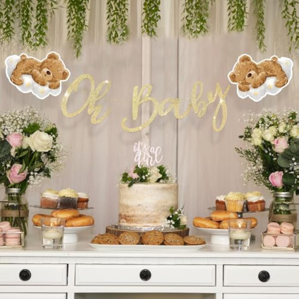 | ?Package Include?You Will Receive 1 Pcs Oh Baby Banner For Bear Baby Shower Decorations | | ?Cute Design?There Are Two Cute Bears Who Are Sleeping On The Clouds,Looking Very Adorable.The Oh Baby Sign Is Glitter Gold,Looking Attractive | | ?Good Quality?Made From Thick Cardstock,Thick And Sturdy Enough,Won'T Tear Easily | | ?Easy To Assemble?It Comes With Plastic Needle To Help You Assemble The Banner Easily | | ?Bear Baby Shower Decorations?This Oh Baby Bear Banner Is Perfect For Bear Baby Shower,We Can Bearly Wait Baby Shower Decorations | |