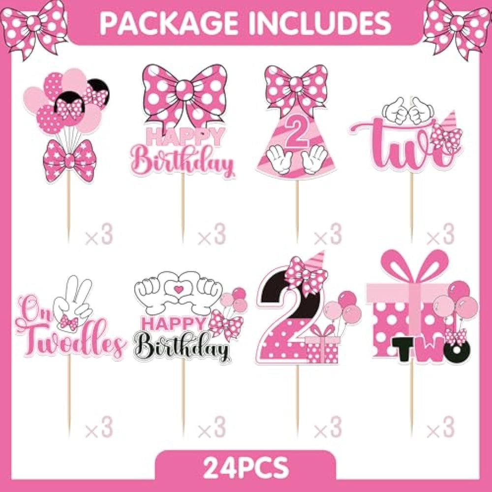 | Package Includes: This Oh Twodles Cupcake Toppers Set Includes 24 Cupcake Toppers, Featuring 8 Cute Designs With 3 Pieces Of Each. Perfect For A 2Nd Birthday Celebration, These Toppers Bring A Fun And Festive Touch To Your Pink Mouse-Themed Party | | High-Quality Materials: Crafted From Food-Safe Materials, These Adorable Oh Twodles Birthday Decorations Are Safe And Sturdy, Making Them Perfect For Decorating Your 2Nd Birthday Treats With Ease And Style | | Easy To Use And Reusable: These Oh Twodles Cupcake Toppers Are Easy To Use—Just Insert Them Into Cakes Or Cupcakes For Instant Decoration. Designed For 2Nd Birthday Celebrations, They Can Be Reused To Add A Cute Touch To Future Events | | Mouse Themed Dsign: This Oh Twodles Birthday Decorations Set Features A Pink Color Scheme With Cute Designs Like The Number "2", "Two", Bows, White Gloves, "Oh Twodles", And "Happy Birthday" Text—Perfect For Making Your Child'S 2Nd Birthday Party Extra Special And Fun | | Wide Application: This Oh Twodles Cupcake Toppers Set Works Well For 2Nd Birthday Party And Mouse-Themed Party. Suitable For Both Indoor And Outdoor Use, It Helps Create A Fun Atmosphere In Any Setting | |