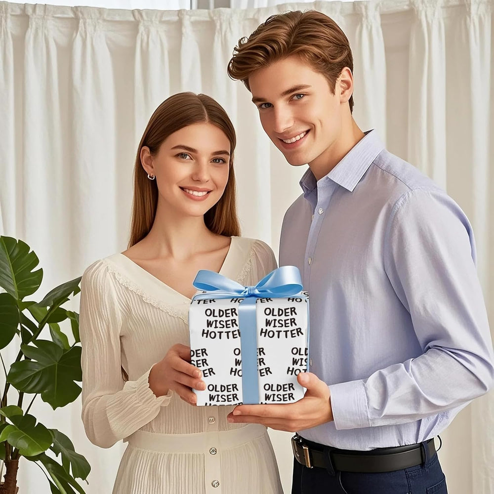 | Older Wiser Hotter Birthday Wrapping Paper: This Playful Wrapping Paper Features A Fun "Older Wiser Hotter" Design, Perfect For Celebrating Adult Birthdays And Milestones. Ideal For Milestone Celebrations: Whether It'S A 30Th, 40Th, Or 50Th Birthday, This Wrapping Paper Adds A Touch Of Humor And Fun To The Occasion. Premium And Sturdy: Made From High-Quality Materials, This Wrapping Paper Is Durable And Ensures Your Gifts Look Great. Perfect For Milestone Celebrations: Not Just For Wrapping, This Paper Is Ideal For Creating Decorations, Invitations, And More For Milestone Birthdays, Adding A Touch Of Elegance And Humor To Your Event.