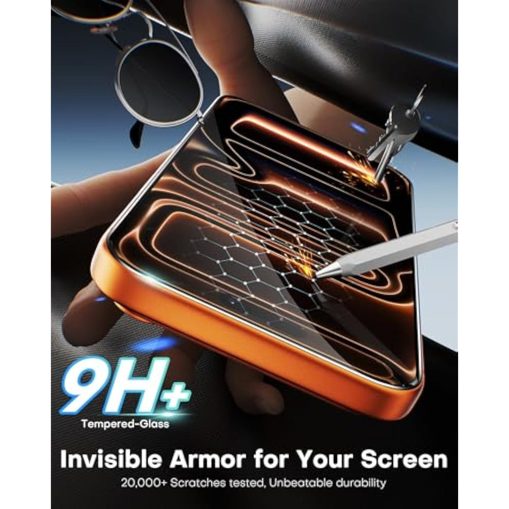 | Industry-Leading Protection: Featuring 2025-upgraded technology, this tempered glass screen protector is exclusively designed for iPhone 17 Pro Max, offering full coverage and ultimate shatterproof protection. Rest assured that this high-quality film fits your iPhone perfectly, ensuring superior defense against scratches, drops, and impacts | | Effortlessly Simple Application: Experience the easiest installation process ever designed for a screen protector. Simply position the alignment frame on your iPhone 17 Pro Max, gently pull the plastic tab, and watch as the high-quality glass seamlessly settles onto your display. No complicated steps, no messy adhesives, and no frustration. It’s installation made foolproof—so simple you’ll hardly believe it’s done | | Military-Grade Toughness: Crafted from premium tempered 9H glass, this screen protector delivers exceptional drop and scratch resistance—meeting the rigorous standards adopted by aerospace and military applications. Trust in supreme defense that keeps your iPhone 17 Pro Max’s display perfectly protected under the toughest conditions | | Anti-Oil Anti-Smudge Protection: Tired of those annoying fingerprints and smudges that cover your screen after just a few taps Unlike ordinary screen protectors with low-quality coatings, this one features an advanced oleophobic layer that actively resists oil, sweat, and dirt. Whether you’re typing, swiping, or watching videos, your iPhone 17 Pro Max stays strikingly clean and smudge-free—just like the day you got it. Say goodbye to constant wiping and hello to a pristine, always-new display | | Ultra-High Definition Clarity: Engineered with optical-grade transparent glass and an advanced anti-reflective coating, this screen protector delivers 99% light transmittance for unparalleled clarity and true-to-life color representation. Whether you’re browsing photos, streaming HD content, or video