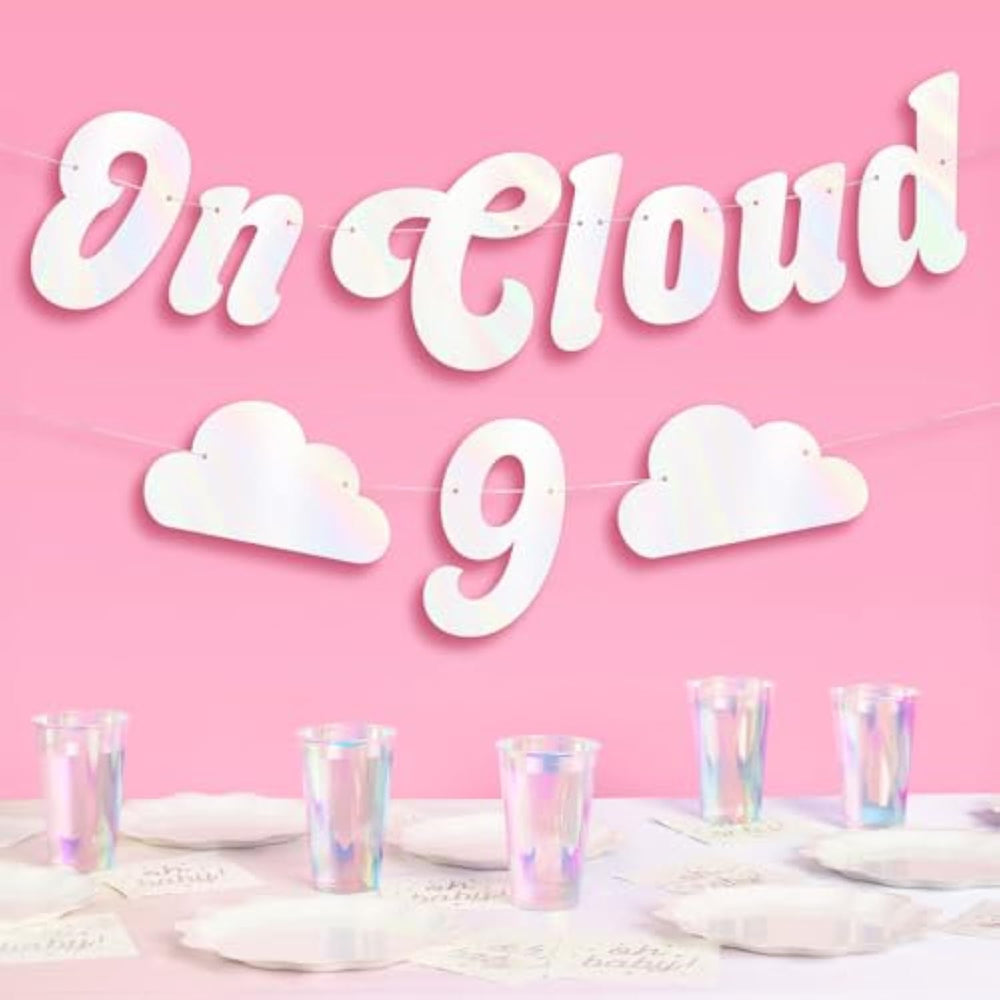 | On Cloud Nine: Our White Foil On Cloud 9 Banner Is The Party Addition You'Ve Been Looking For + A Hit! | | Foil Details: Each Banner Features A White Foil Paper Finish With Letters That Spell Out "On Cloud 9" - Think Super Fun + Sparkly! The Finish Feels Very Luxe + The Perfect Compliment To Your Event :) | | For That Special Day: One Size Fits All! Perfect For Any Bride Or Mom To Be! | | Ready To Party: This Banner Is Pre-Strung On One Silver String And Ready For Action! | | Size: Each Set Comes With One Banner That Reads "On Cloud 9" And Spans 5 Feet Total | |