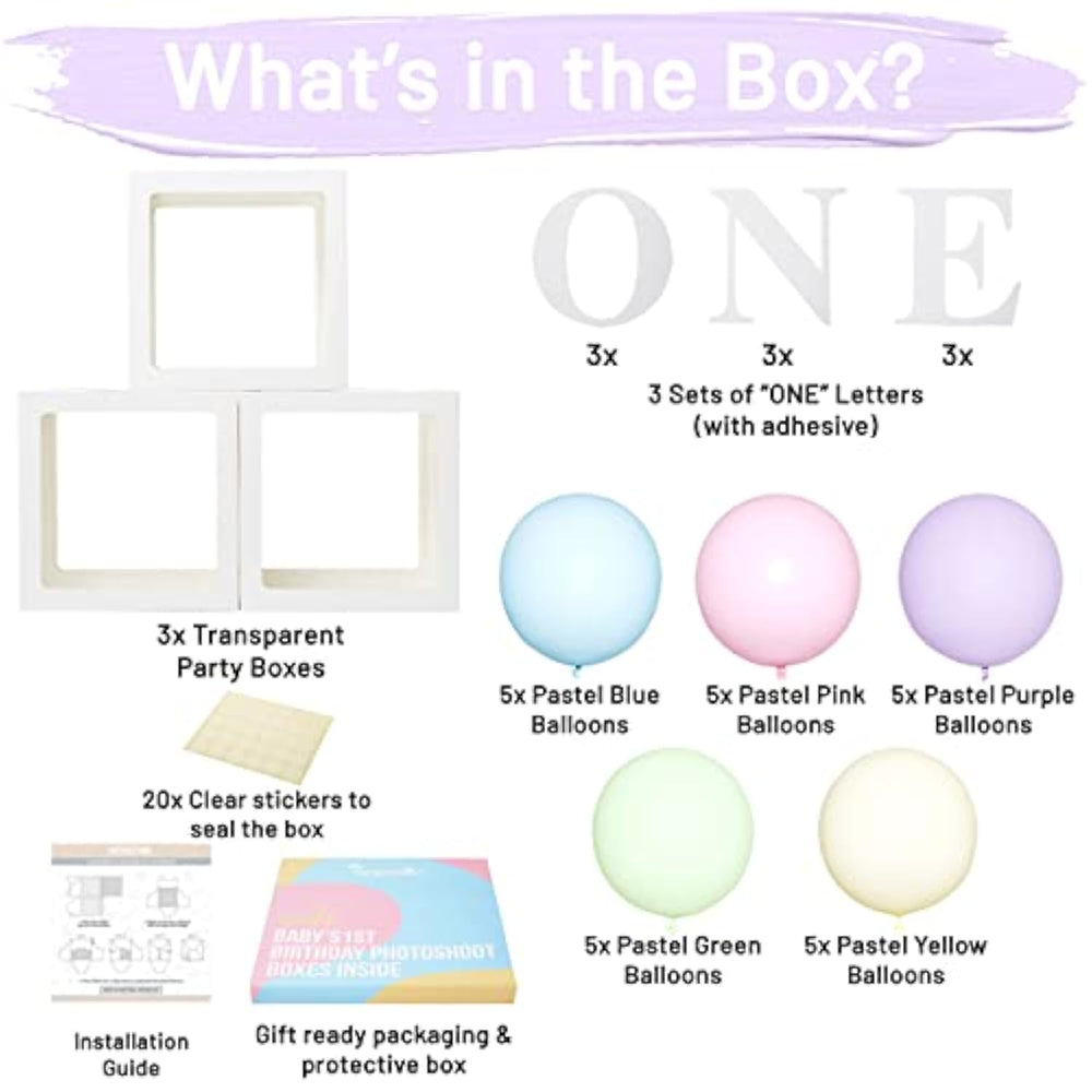 Premium Decorations: Thicker 350 Gsm Card Stock With Premium Glue And Printed Decorations Manual For Professional Quality | Complete Theme Set: Includes 24 Balloons In 5 Pastel Colors To Match Your Baby'S Birthday Theme | Complete 'One' Coverage: 3 Sets Of 'O', 'N', And 'E' Letters With Self-Adhesive For Complete 'One' Coverage | Easy To Use: Intuitive Illustrations And Simple Instructions For Quick And Stress-Free Setup | Giftable And Protective: Beautifully Packaged In A Giftable Box For Safe Delivery And Protection During Setup |