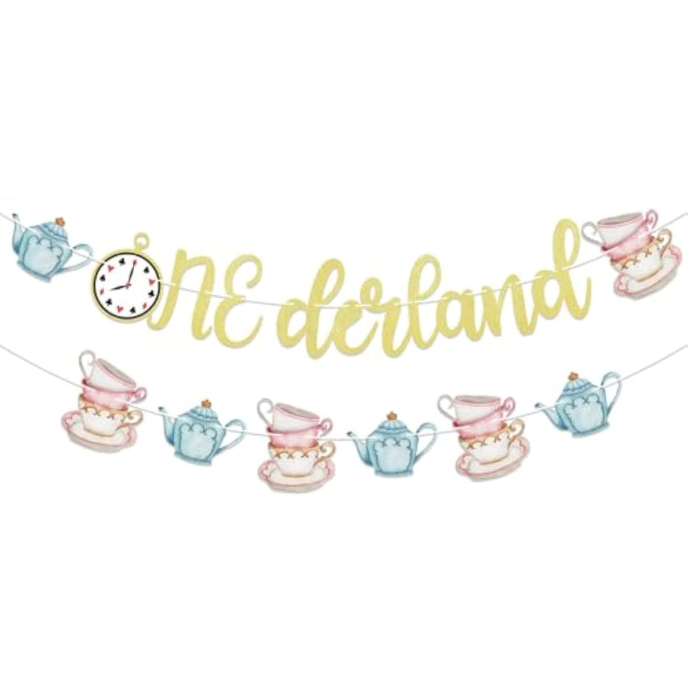 | Material: Eco-Friendly Paper, Surface-Attached Glitter, Perfect For A Alice In Onederland Birthday Party. | | Gold Glitter Onederland Bunting Decorations, Baby 1St Birthday Party Supplies, A Big Hit For Your Party. | | This Banner Is So Suitable For Alice In Onederland Birthday Party, Baby Shower Decorations Sign, Photo Studio, Etc. Perfect For Your 1St Birthday Party Decorations. | | Pre-Strung: The Onederland Banner You Receive Is Already Strung On A 6-Foot String, So All You Have To Do Is Hang It Up And Get Your Party Started! | | Unique Design: Meticulously Hand Designed, We Made Sure Our Gold Glitter Onederland Banners Were Super Premium And One-Of-A-Kind. Perfect For Your 1St Birthday Party And Will Set Your Birthday Celebration Apart Too! | |