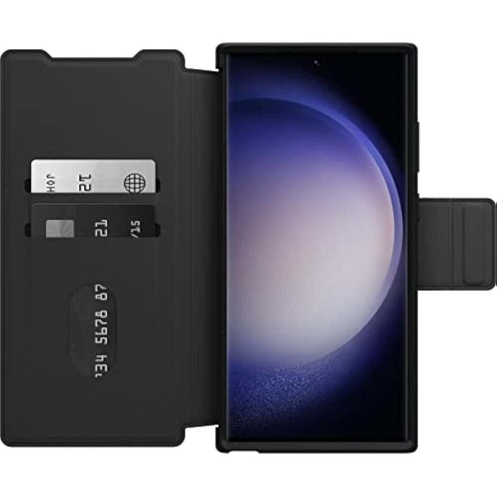 | Strada Series is a premium leather Folio case which will protect your Galaxy S23 Ultra up to 3 times as many drops as military standard (MIL-STD-810G 516.6) | | The soft to the touch leather Folio cover protects the screen; includes a vertical slot to secure cash, cards | | A Magnetic latch secures folio in closed with open positions | | Pair with an OtterBox screen protector for total, 360-degree protection | | Compatible with Galaxy S23 Ultra.Reduced Waste Packaging: At OtterBox we’ve taken concrete steps to reduce our impact, that’s why we made our retail packaging from sustainable materials that are fully recyclable, use nearly no plastic | |