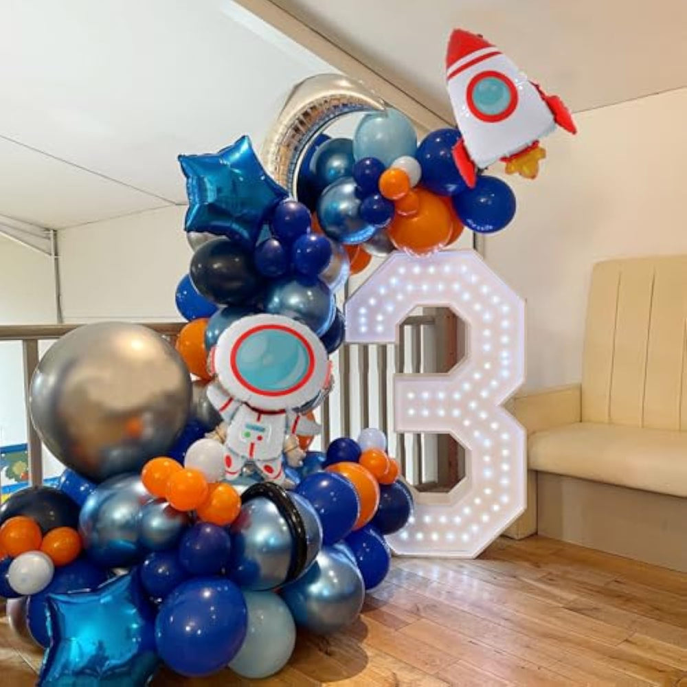 Package Include: 30Pcs Navy Blue Balloons + 30Pcs Metallic Blue Balloons + 30Pcs Metallic Silver Balloons + 10Pcs Orange Balloons + 10Pcs Metallic Long Balloons + 6Pcs Foil Balloons + 1Pcs Ribbon + 1Pcs Balloon Arch Strip Tape + 1 Roll Of 100 Dot Glue. | Premium Material: Our Party Balloons Are Made Of Natural Latex, Non-Toxic. All Materials Are Of High Quality And Good Safety. | Widely Applications: The Balloon Arch Kit Is Perfect For Weddings, Engagements, Anniversaries, Baby Showers, Business Celebration, Graduation And Gender Reveal Party, Etc. | Easy To Assemble: You Could Diy Any Style You Like. We Offer The Tools Which Can Help You To Make Balloon Arches More Easily. It Will Be A Funny Family Craft To Diy With Your Family. Just Enjoy It. | Satisfaction : If You Are Not Satisfied With Our Products,Just Tell Us And We Will Refund You Unconditionally In Full. |