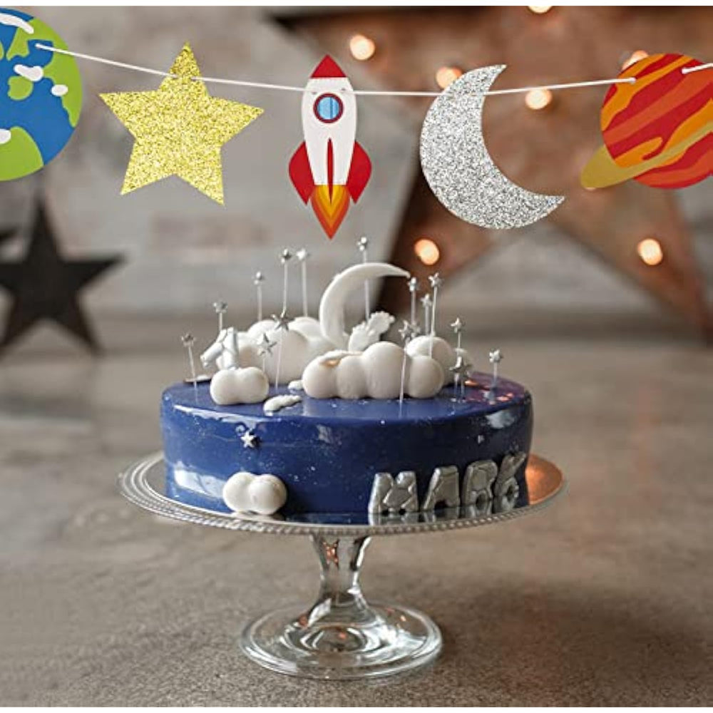 | Design Of Outer Space Theme - This Novel And Special Outer Space Theme Garland Will Add Sparkle To Your Party, It Features Rockets, Astronauts, Planets And Stars, The Stars And The Moon Sparkle, It'S The Perfect Decoration For The Party. | | Outer Space Birthday Decoration - Decorate Your Walls, Game Rooms, Rooms And Any Place You Like With This New And Special Outer Space Banner, It Will Surprise Him, Take Some Great Photos To Prove How Interesting It Is. | | High Quality Products - All Materials Are Completely Safe And Harmless,We Add Protective Film To Rockets, Astronauts, Planets And Stars To, Gold And Silver Glitter Accents On Moon And Star, Make Products Look More Textured And Durable, Banners Can Be Used Repeatedly. | | Suitable Size - The Size Of A Single Card Is About 4.1 "Wide By 4.1" High, 12 Cards In One Banner (One-Sided), The Wreath Needs To Be Self Assembled Using The Tools Provided, Which Is Very Simple. | | Services And Commitments - We Are A Manufacturer Specializing In The Production And Development Of Party Products Bringing You One Happy Party Experience After Another. If You Have Any Problems Or Have Problems Using Our Products, Please Feel Free To