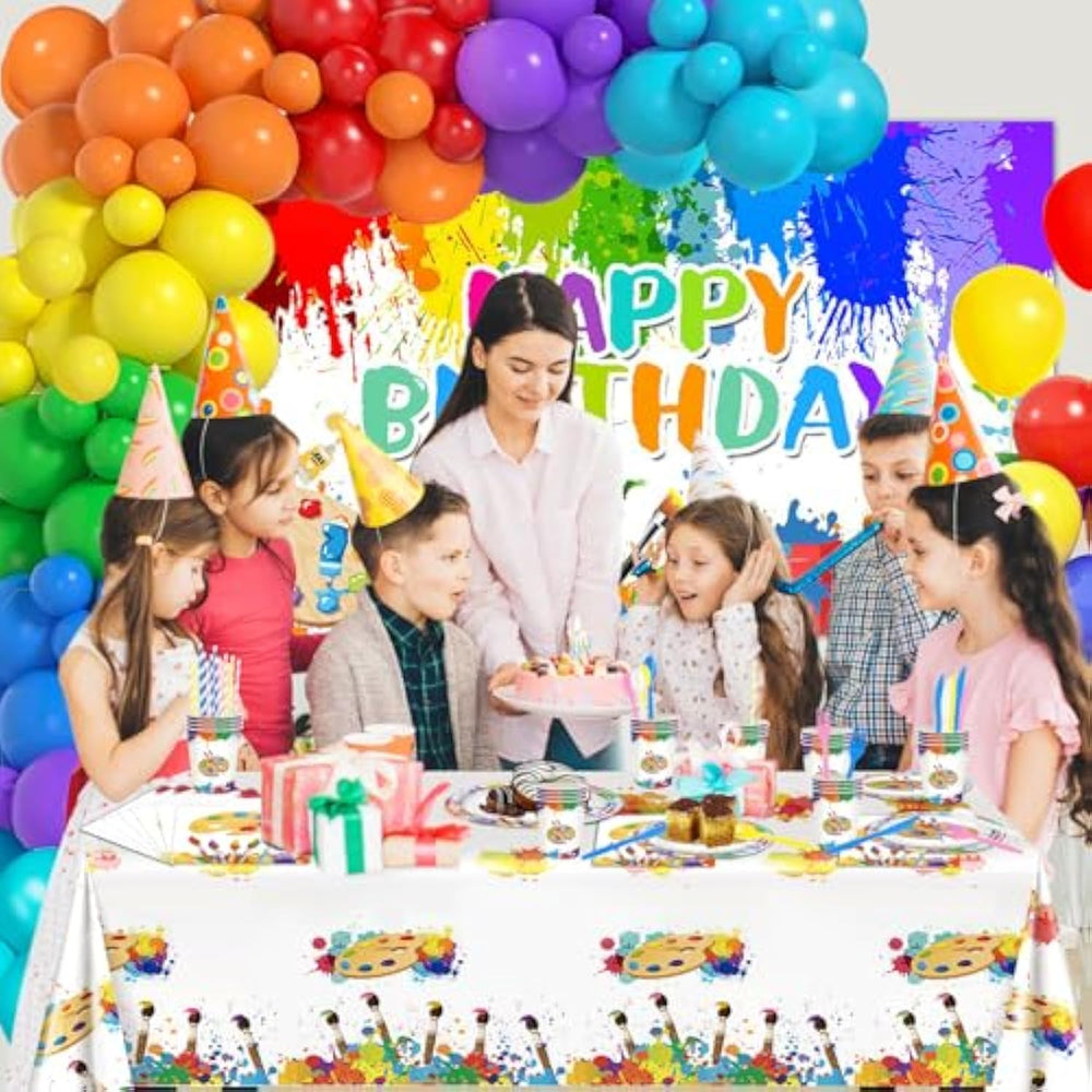 Vibrant Art Design For Birthday: These Art Paint Birthday Party Decorations Are Designed With Colorful Background And Art Painting Theme Color Palette, Brushes, Graffiti, Etc, The Whole Art Birthday Party Supplies Set Will Definitely Leave You Joyful And Artistic Moment With Kids, Friends And Family | Complete Paint Birthday Party Decorations: This Paint Party Supplies Set Includes 1* Paint Happy Birthday Backdrop, 1* Art Paint Tablecloth, 192* Paint Tableware Set For 24 Guests (Plates, Knife, Fork, Napkin, Cup, Spoon, Straw), 133* Balloons In Different Colors, Everything You Need To Have An Art Themed Birthday Party Is In The Paint Birthday Party Favors Set | High Quality Material: The Art Paint Happy Birthday Backdrop Is Made Of Flag Cloth, Soft, Durable And Resuable; The Graffiti Paint Tablecloth Uses High-Quality Fabric Material, Soft And Washable; The Paint And Art Party Supplies Tableware Set Is 100% Food-Grade And Bpa-Free, Non-Toxic, Biodegradable, And Recyclable Heavy-Duty Paper, Which Will Not Fold, Tear, Or Break; The Balloons Are Made Of Natural Latex | Art Paint Birthday Party Supplies Apply To: This Paint Party Favors Set Is Designed For Birthday, Suitable For Both Indoor And Outdoor; With Its Creative Patterns, It Will Be A Great Choice For Art Themed Birthday Party, Kids And Parents Events, Children'S Birthday, Friends Time, Family Time, Etc | Warm Tips: Please Do Not Use Microwave Ovens To Heat Plates And Cups; Due To Package Requirement, There May Be Some Creases On The Backdrop And Tablecloth Surface, Iron The Backdrop With Low Temperature And These Creases Will Be Gone; To Avoid Over-Inflating, Please Keep Balloons Away From Sunlight, High Temperatures, And Sharp Objects To Prevent Bursting. |