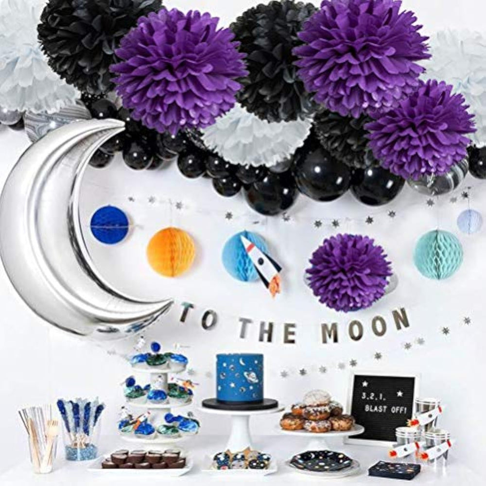 | Tissue Paper Pom Poms Diy Pieces Are Pre-Folded And Pre-Cut,Each One Has Instruction On The Wrap | | Tissue Paper Flower Black Purple And White 12Pc In 2 Sizes,Package Include Black Crafts Flower 4Pc (2Pc In 12'' And 2Pc In 10''), Purple Crafts Flower 4Pc(2Pc In 12'' And 2Pc In 10''), White Crafts Flower 4Pc(2Pc In 12'' And 2Pc In 10'') | | Galaxy Party Supplies Hang From The Ceiling Above A Table Or Under The Verandah, Hang From Branches In Trees, Set On Gift Table Or Dinner Table, Stick On The Wall,Delicate And Romantic Fluff Up Your Party | | Birthday Wedding Graduation Tissue Paper Crafts Well Packaged, Good For Gender Reveal Theme Party,Bee And Honey Baby Shower,Mommy To Be,Birtyday,Summer Holiday Party Supplies | | Birthday Party Decoration Great For Birthday,Wedding,Graduation,New Year,Summer Holiday Party Room Decor,Wall Decor,Bridal Shower,Nursery,Garden Outdoor Party,Tea Party,Girls Event,Engagement | |