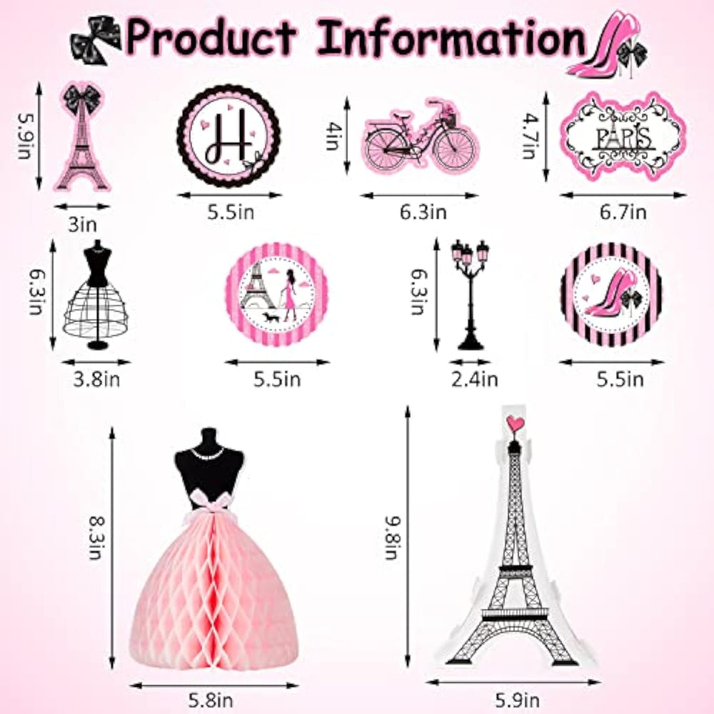 | Pvc | | Complete Set Includes Banner, Centerpiece, Cutout, And Swirls To Decorate Paris Themed Parties | | Features Parisian Icons Like The Eiffel Tower, Dresses, Heels, And More To Match The Theme | | Durable Paper And Pvc Materials With Vibrant Prints; Items Can Be Reused | | Perfect For Paris Themed Baby Showers, Birthdays, Celebrations, And Family Gatherings | | Decorate Walls, Ceilings, Trees, And Tabletops; Banner Comes Pre-Assembled | |