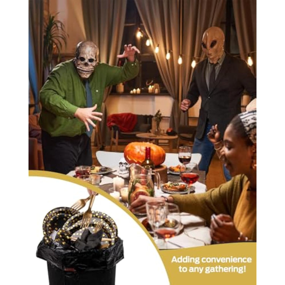 | Ideal For 50 Guests: This Party Supplies Are Perfectly Proportioned For A Gathering Of 50. Our Complete Disposable Dinnerware Sets Include 7-Inch Paper Plates, 6.5-Inch Napkins, And Matching Plastic Forks — All Designed To Make Your Event Seamless And Enjoyable | | Black Gold Elegance: Create An Upscale Party Vibe With Our Classy Black And Gold Dots Party Supplies. The Black And Gold Dots Plate’S Simple Elegance Of This Design Brings A Touch Of Luxury To Any Celebration. Perfect For Those Who Like Things Nice And Stylish | | Hassle-Free Cleanup: With Disposable Plates And Dinnerware That Are Both Convenient And Eco-Conscious, You Can Relax And Enjoy The Festivities Without Worrying About Cleanup. These Black And Gold Dots Party Decorations Ensure Hygienic Dining And Easy Post-Event Management | | Versatile For Any Celebration: Whether It'S A Wedding, Birthday, Anniversary, Engagement, Baby Shower, Picnic, Bridal Shower, Graduation Celebration, Or Any Other Significant Occasion, This Versatile Party Set Adds A Layer Of Sophistication To Any Event | | Use Carefully: Please Note That These Party Supplies Are Neither Microwaveable Nor Safe For Washing. The Black Party Plates Are Designed For One-Time Use, Ensuring Convenience And Hygiene At Your Event | |