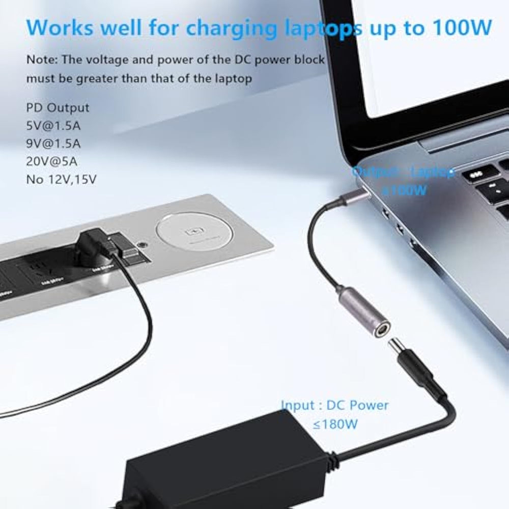 | ?Input Output?Input: Dc7450 Female Connector,15V-20.5V. Output: Type-C Male Connector, Pd 5V/9V 1.5A,20V 5A, Pd Output No 12V,15V. Note: Input Must Be ?Output. Cable Length: 17.4Cm/6.8Inch/0.57Ft. | | ?Note?Please Do Not Charge The Laptop Which Above 100W, And Your Power Brick Must Be Greater Than The Laptop Power, Otherwise It Will Not Work. For Example, Your Dc Power Brick Is 90W, But Your Laptop Is 90W Or 100W Or Above, It Will Not Work | | ?Built-In Chip Wide Compatibility?Dc7406 To Usb Type C Extension Cable Built-In Pd Automatic Identification Induction Chip, It Can Output 5V/9V/20V.Type-C Equipment Can Be Powered Or Charged Through Standard Dc Plug / Adapter, Which Is Suitable For All Kinds Of Small Chargers, Mobile Phones,Laptop, Etc. | | ?High Quality Material?Dc To Type-C Connector Head Adopts High-Quality Metal,Injection Molding.Wire Body Adopts Nylon Braided Material, And Pure Copper Inner Core. | | ?Convenient To Carry? Dc 7.4Mm X 5.0Mm Female (7.4Mm X 0.6Mm) Input To Usb Type C Male Power Charging Cable, Allows You To Get Rid Of The Trouble Of Heavy Chargers / Power Bricks And Carry It In Your Backpack On Your Office/Studio/Travel. | |