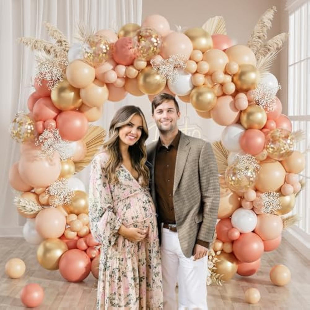 | Package Include: The Peach Balloon Arch Contains 36Pcs Pastel Orange Balloons(18Inchx1, 12Inchx15, 5Inchx20), 36Pcs Nude Balloons(18Inchx1, 12Inchx15, 5Inchx20), 10Inch White Balloonsx15, 10Inch Pearl Rose Gold Balloonsx15, 10Inch Metallic Gold Balloonsx15, 12Inch Gold Confetti Balloonsx5, White Ribbonx1, Glue Dotsx60, Decorative Stripx1 | | Good Latex Balloons: The Peach Balloons Are Made Of Great Quality Latex, Which Is Thick, Elastic And Not Easy To Pop. The Balloons Can Be Filled With Air Or Helium And Can Last A Long Time | | Easy To Use: We Provide Three Tools To Help You Create A Peach Balloon Arch Kit More Easily, Including Ribbon, Dot Glue, And Decorative Strip. First, Inflate The Different Sizes Balloons And Tie The Balloon Knots Together With Decorative Strip. Second, Stick The Balloon Garland On A Party Background With Ribbon. Finally, Use Dot Glue To Stick 5 Inch Balloons Onto The Balloon Arch To Fill Any Areas | | Suitable For Many Occasions: The Peach Balloon Garland Is Good For Peach Birthday Decorations, Peach Baby Shower Decorations, Bridal Shower Decorations, Mothers Day Decorations, Wedding Decorations, Rose Gold Party Decorations | | Warm Reminder: Rub The Gold Confetti Balloon On A Dry Towel, Carpet, Or Hair To Create Static, Allowing The Confetti To Evenly Distribute. If You'Re Not Happy With The Blush Balloon Arch Kit For Any Reason, We Will Work Hard To Solve The Problem Until The Problem Is Resolved. We'Re Committed To Providing You With Great Service And Helping You Create A Great Party Atmosphere | |