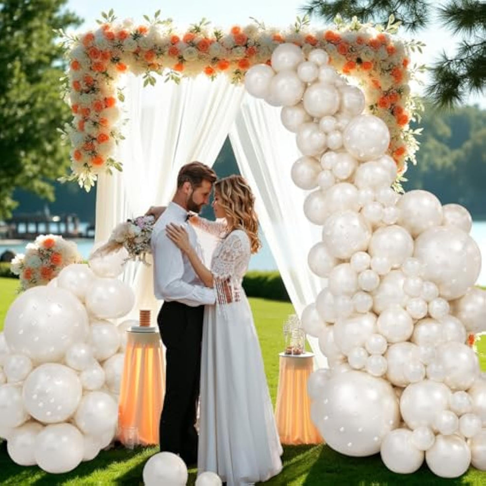 | Premium Pearl White Elegance: Features Stunning Double-Layer Pearl White Balloons (Pearl White Outer + Sand White Inner) For An Ultra-Luxurious, Opaque Shine That Resists Oxidation Longer Than Standard Balloons. | | Complete Pearl Balloon Arch Kit: Everything Included! 3X18", 20X12", 20X10", 40X5" Balloons, 1 Sheet 6Mm Pearl Stickers (Off-White), 5X Dot Tapes (100 Dots Each), 1X 5M Dual-Hole Chain, 1X 10M White Satin Ribbon. Perfect For Creating Arches, Garlands, Columns, Or Centerpieces. | | Effortless Pearl Detailing: Exclusive 6Mm Pearl Stickers Add Instant Sophistication. Easily Apply To Any Balloon For A Cohesive, High-End Pearl Theme. Dot Tapes Ensure Quick, Damage-Free Hanging. | | Quick Sturdy Assembly: Pre-Cut 5M Dual-Hole Chain Simplifies Arch Building. Strong 10M Satin Ribbon Provides Versatile Tying And Hanging For Bouquets Or Clusters. Saves Hours Of Setup Time! | | Versatile Pearl Party Decor: Ideal For Weddings, Baby Showers (Gender Neutral!), Bridal Showers, Anniversary Parties, Birthdays, Or Any Event Demanding Elegant Pearl White Balloons. Creates A Timeless, Romantic, Or Sophisticated Atmosphere. | |