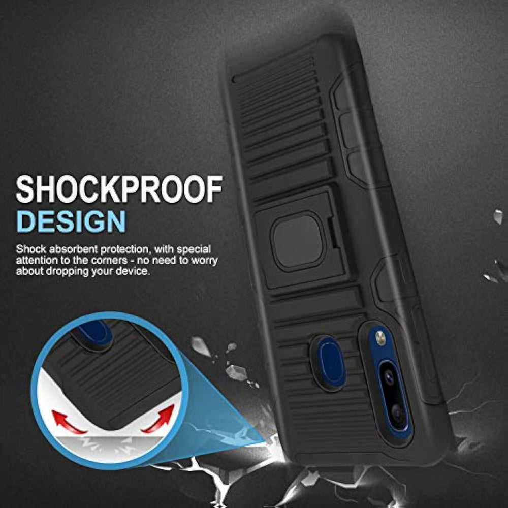| Perfect Compatible With Samsung Galaxy A30/Galaxy A20/Galaxy A50 | | The Multi-Layer Case Provides Shock Absorbing Protection, Outer Shell And A Inner Soft Layer Offers Extra Protection If Dropped. This Case Has Air Protection Shock Absorbing Cushions In The Corners Of Dropped Or Bumped, Outer Sheel Has Protective Scratch Coat To Keep Your Case And Phone Looking Like New. | | 180° Holster Clips To Most Straps Comfortably, And The Fold Out/In Kickstand Which Is Easy To Use Convenient For Comfortable Video Watching And Messaging. The Case Provides Unobstructed Access To Power And Volume Buttons. Precise Cutouts Allow Complete Access To All Ports, Buttons, Cameras, Speakers, And Mics. | | Phone Screen Has To Be Facing Toward Holster. Built-In Metal Plate Which Can Perfectly Work With Magnet Car Holder. | | The Case Also Offers Great Camera Protection With A Raised Lip To Avoid Scratches If Placed On Rough Surfaces. Front Raised Lip Gives Added Protection For The Screen Of Your Phone. | |