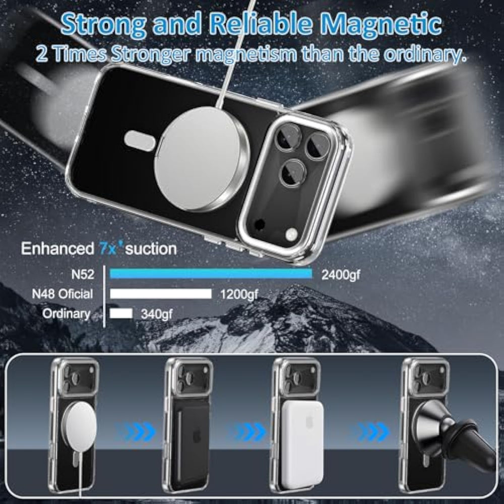| Ultra-Strong Magnetic Attachment Phone Case?Equipped With An Upgraded Magnet, This Magsafe Iphone 17 Pro Phone Case Locks Onto Magsafe Chargers, Car Mounts, Or Wallets-No Slipping, No Fumbling, Just Instant, Rock-Solid Attachment. Perfect For Busy Mornings Or On-The-Go Days When You Need Your Gear To Stay Put! | | Camera Buttons--Totally Protected!?Forget Scratches On Your Camera Or Mushy Buttons! This Phone Case Design For 17 Pro Has1.2Mm Raised Lip Around The Lens To Shield It From Tables, Counters, And Clumsy Drops, Plus Precision-Fit Button Covers That Click Just Like Your Phone’S Original-Protection That Works And Feels Great. | | Shock Protection?Accidentally Knock Your Phone Off The Counter Or Drop It While Running Errands No Sweat! This Shockproof Phone Case Is Dual-Layer Tpu + Pc Build Is Drop-Tested Up To 6 Feet-Absorbs Shocks Like A Pro, So Your Iphone Stays Scratch-Free, Dent-Free, And Fully Functional. This Protective Case Is Tough Enough For Kids, Pets, And Your Most Chaotic Days! | | Non-Yellowing Anti-Fingerprint : Our Anti-Yellow And Anti-Fingerprint Phone Case Is Made With Top-Shelf, Anti-Oxidant Tpu And Pc That Stays Crystal-Clear For Ages. No Weird Odors, No Flimsy Plastic; Just A Sleek, Clean Look That Keeps Your Iphone Looking Brand New, Longer. | | Hands-Free Bliss?Binge Netflix, Take Facetime
