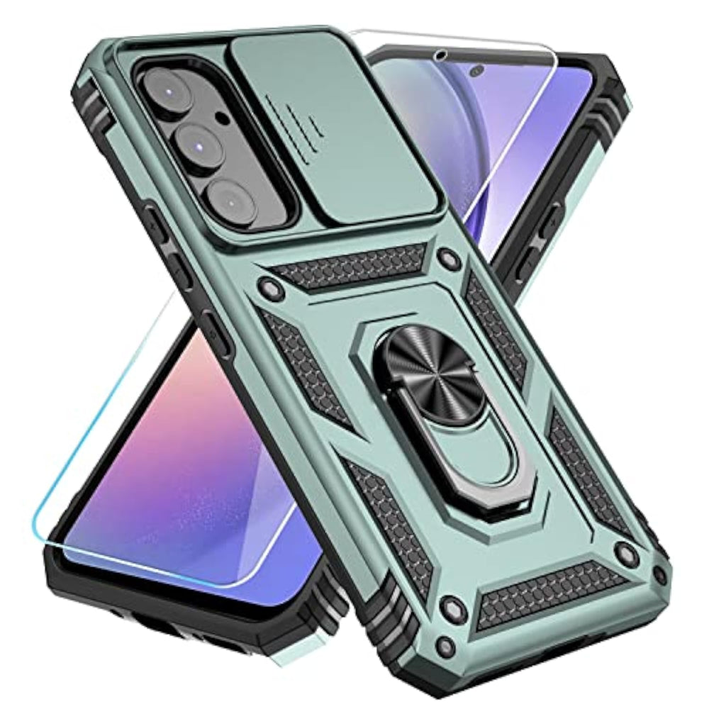 | ?Compatible With Galaxy A54 5G?Specially Designed For Samsung Galaxy A54 5G?2023?.Package Includes Soft Hd Screen Protector And Install Them According To The Instructions.?Note That?Wireless Charging Is Not Supported! | | ?Camera Lens Protection?This Phone Case Use Lens Slide Design, It Easy To Slide And Not To Loose, And Enhance Protective Of Your Phone Camera From Scratches, Collision, Scuffs And Impact, Not Only Improve Safety, Protect Your Privacy But Also Has A Sense Of Fashion. | | ?360° Rotable Magnetic Kickstand?Advanced Ring Metal Kickstand Can Rotate 360°, Easy To Rotate And Sturdy On The Phone Case. Built In Kickstand Gives You The Convenience To Watch Videos And Movies Hands-Free With Desired Comfort And Stability. | | ?Full Body Protection?The Phone Case Is Made Of Anti-Scratch Hard Rigid Pc Bumper And Shock Resistance Soft Tpu, With Air-Cushion Technology For All Corners And The Raised Tpu Bezel Design, Provide All Around Double Protection Of Your Phone From Drops, Scratches And Bumps. | | ?High Quality After Sales Service?We Are Committed To Producing High-Quality Products, If You Come Across Any Issues While Using The Product, Please Feel Free To Reach Out To Us.We Will Provide You With The Most Reasonable Solution. | |